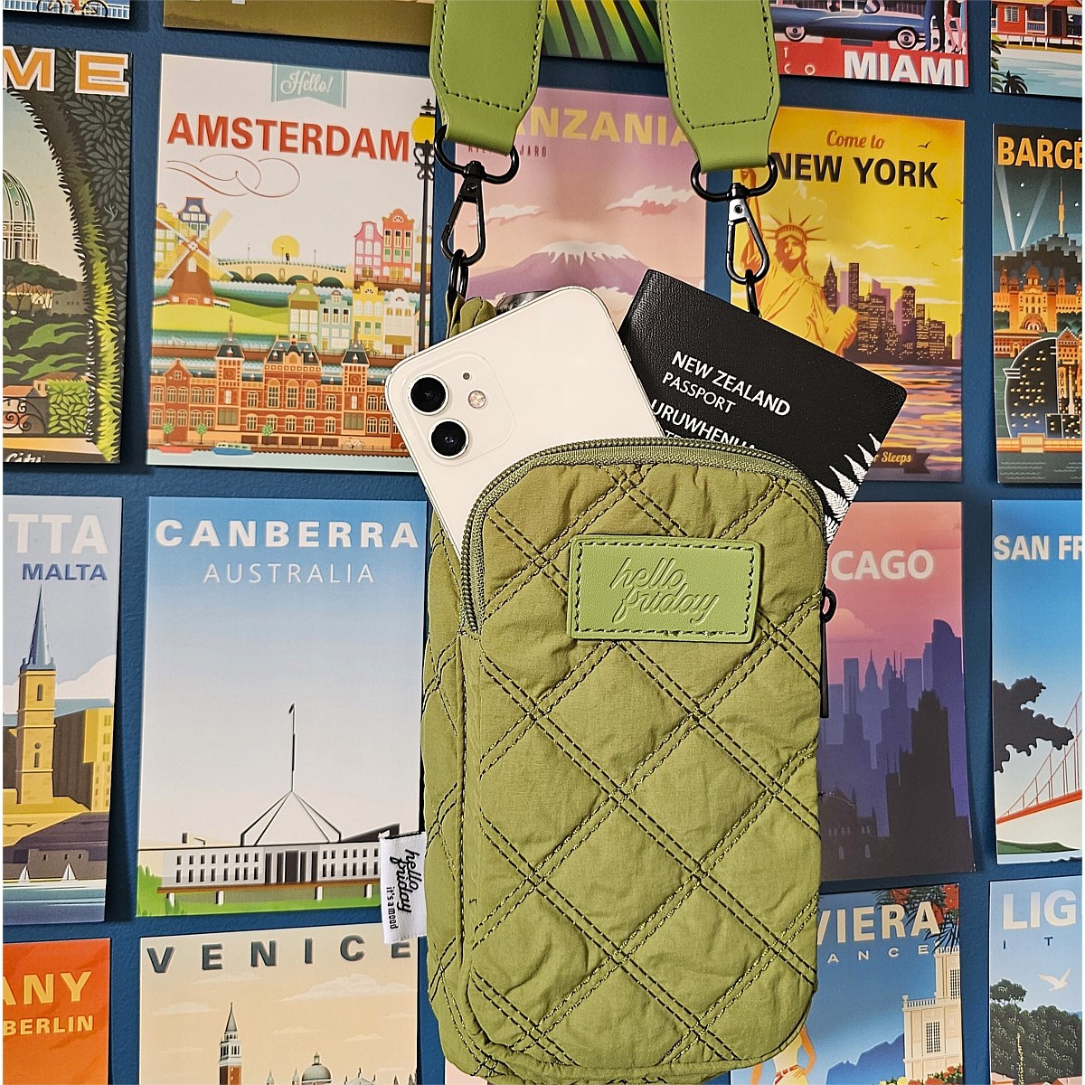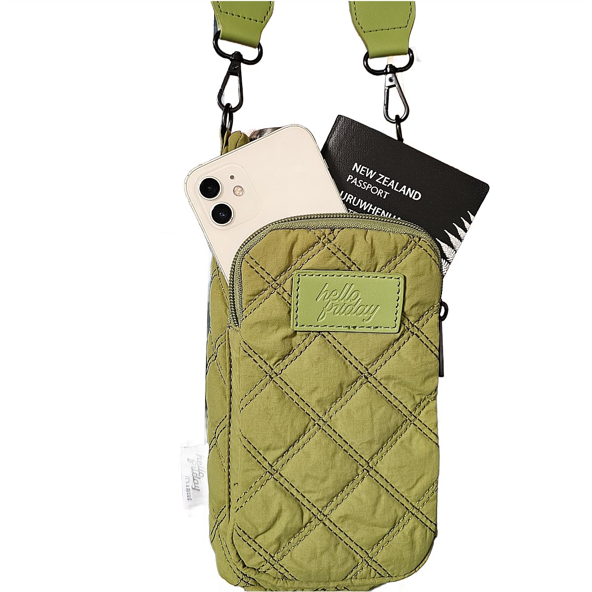 - Hands free cross body carry with an adjustable canvas strap