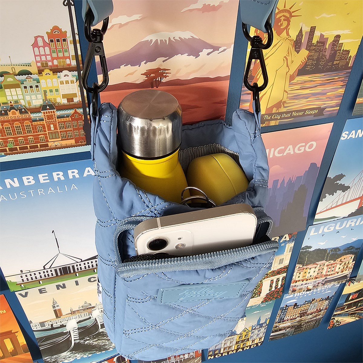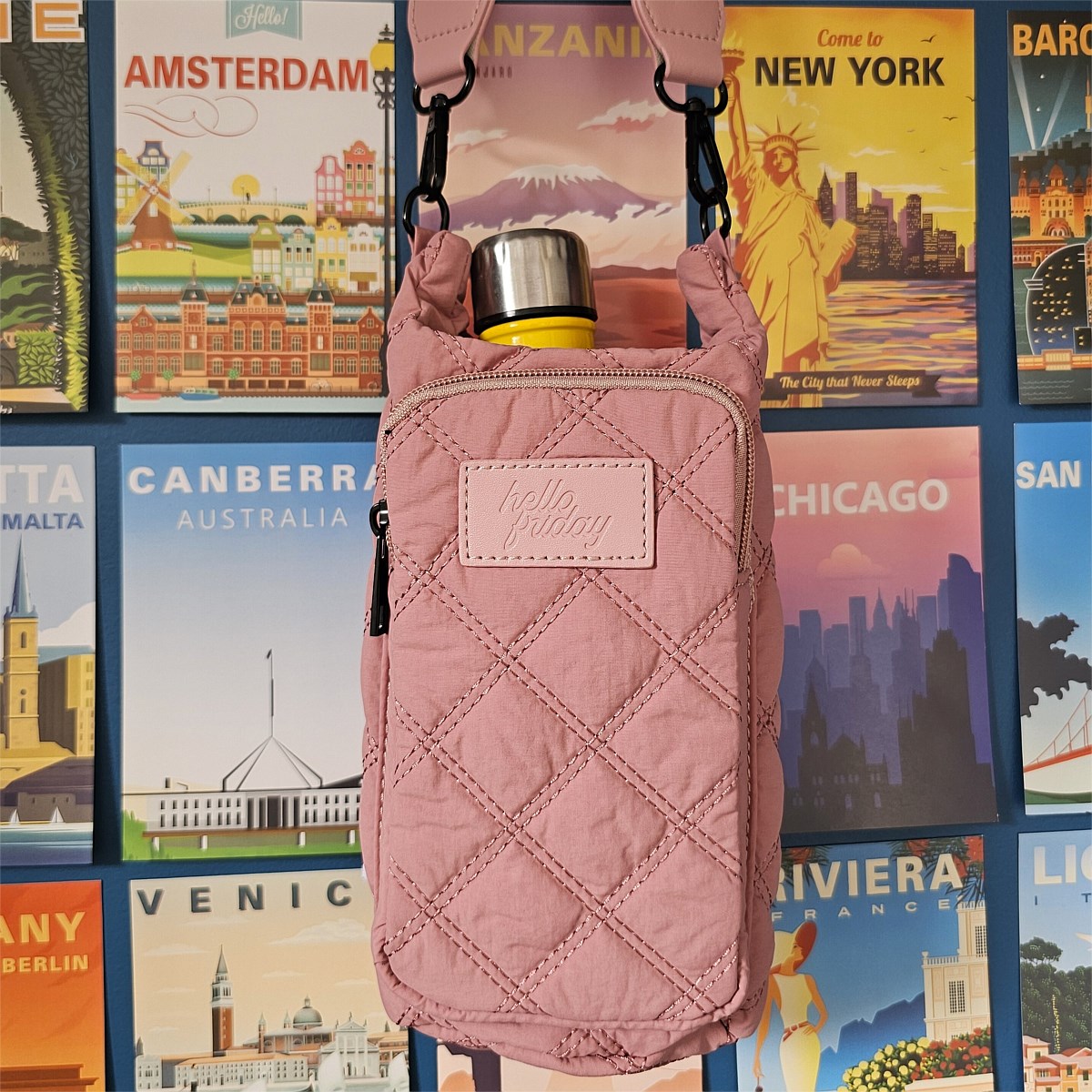 Stay hydrated without tying up your hands. This cross body drink bottle bag is made for walks, errands, travel days, and events, giving you an easy way to carry your bottle plus the essentials you always need close by.
