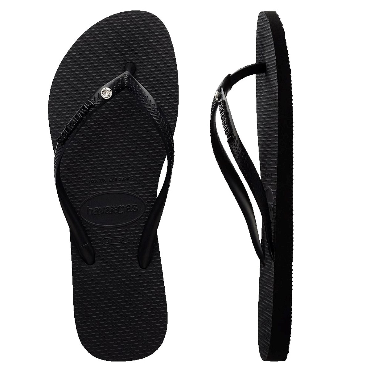 Put some sparkle in your step! Brazilian rubber, a polished silver metal logo and a Swarovski crystal embellishment. All Havaianas products are made or designed in Brazil.