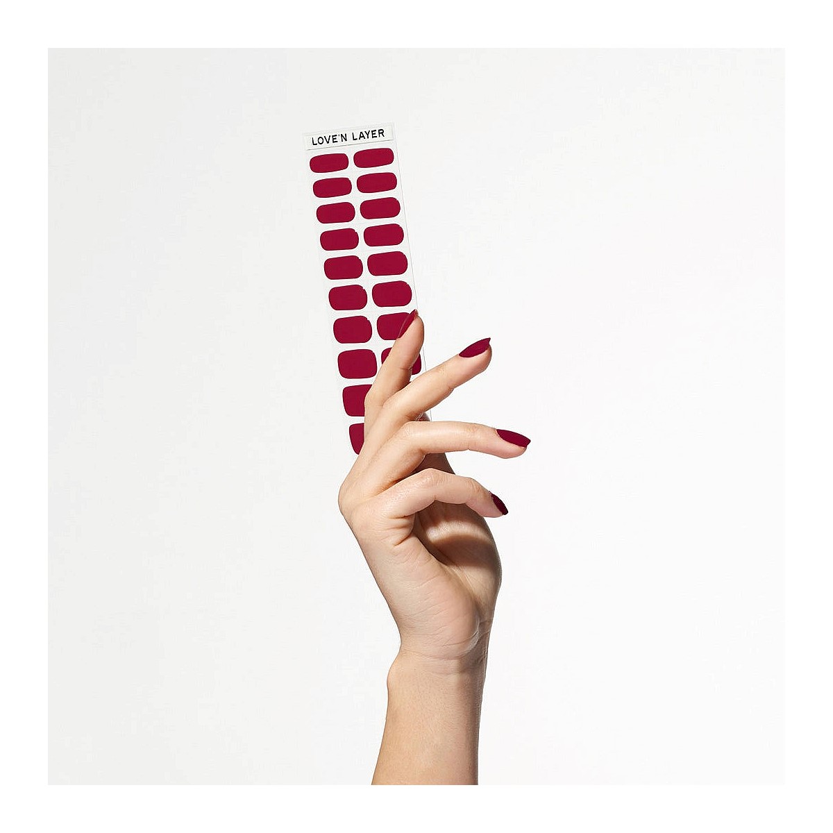 Burgundy Red - a deep and classic red shade for those of you who like to match the colour of your nails with the wine in your glass. Solid burgundy red Layers with glossy surface.