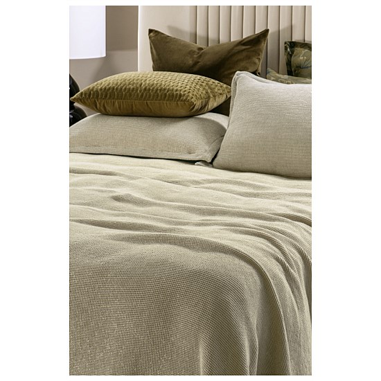 Reflecting organic textures found in nature, this woven matelasse bedspread embodies simplistic style with its waffle weave in a contemporary sand and ivory cotton. The perfect bedspread for an effortless and uncomplicated look.
