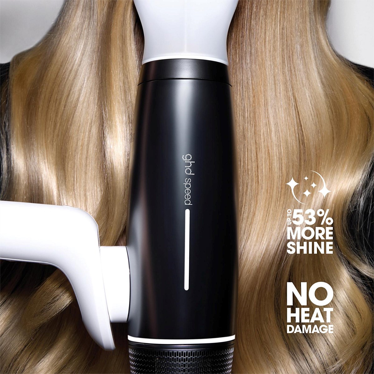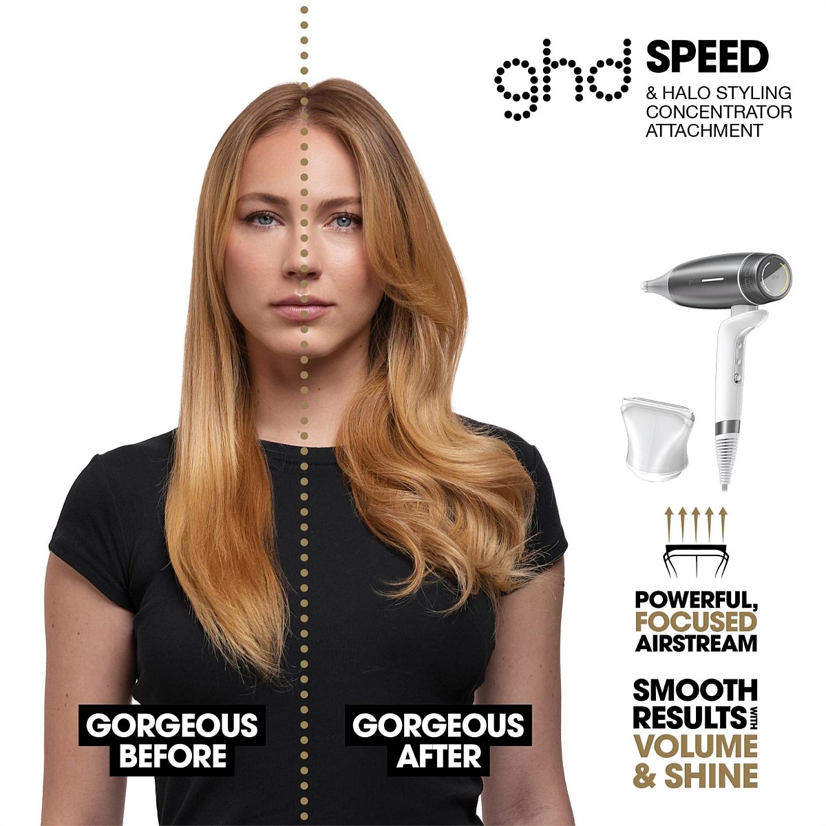Our unbeatably fast hair dryer, experience a new era in blow drying with the ghd speed ionic hair dryer in titanium black, featuring breakthrough ghd halo dual-airflow technology, uniting power with control for cool-scalp and cool-touch with no heat damage1.