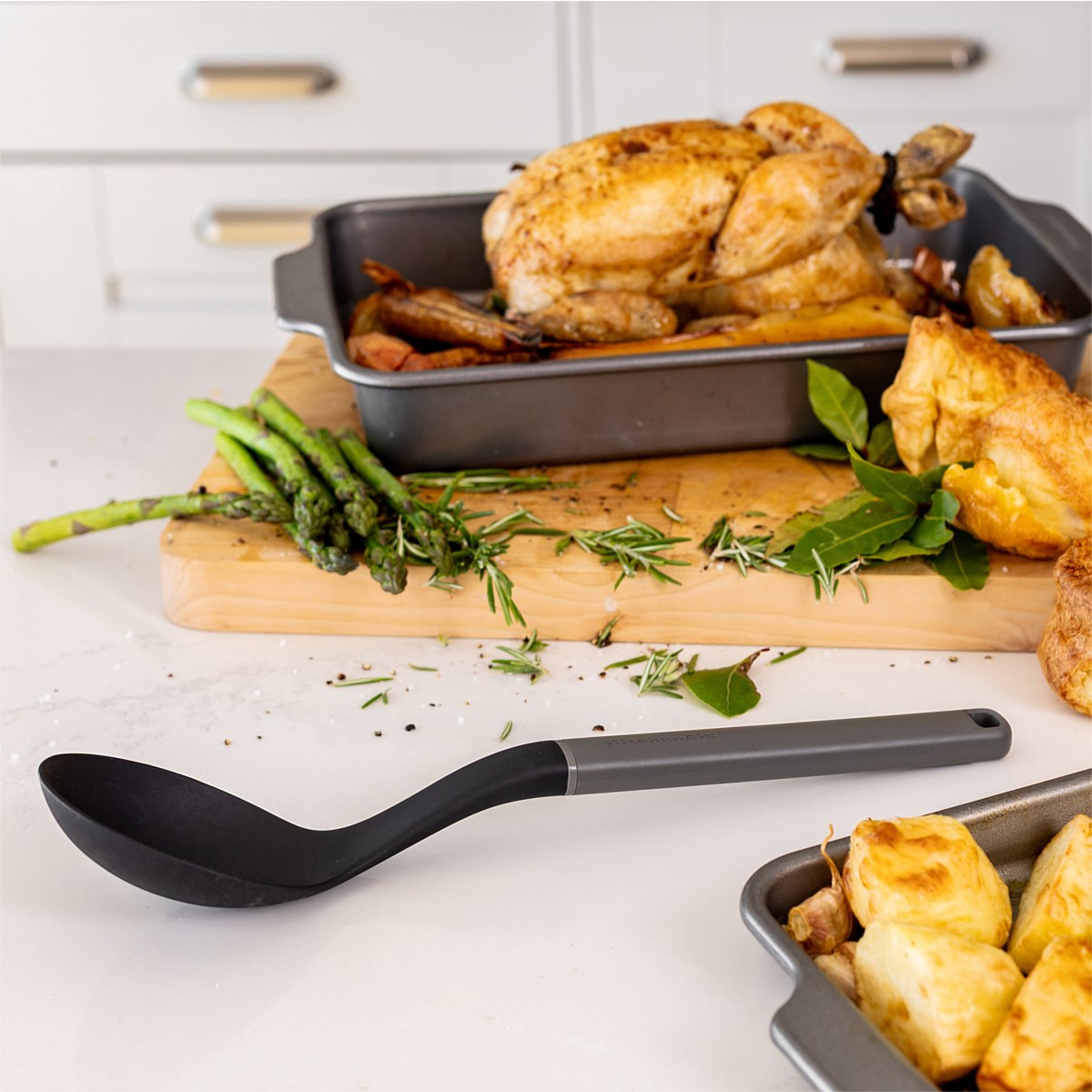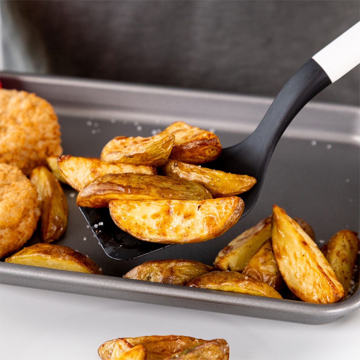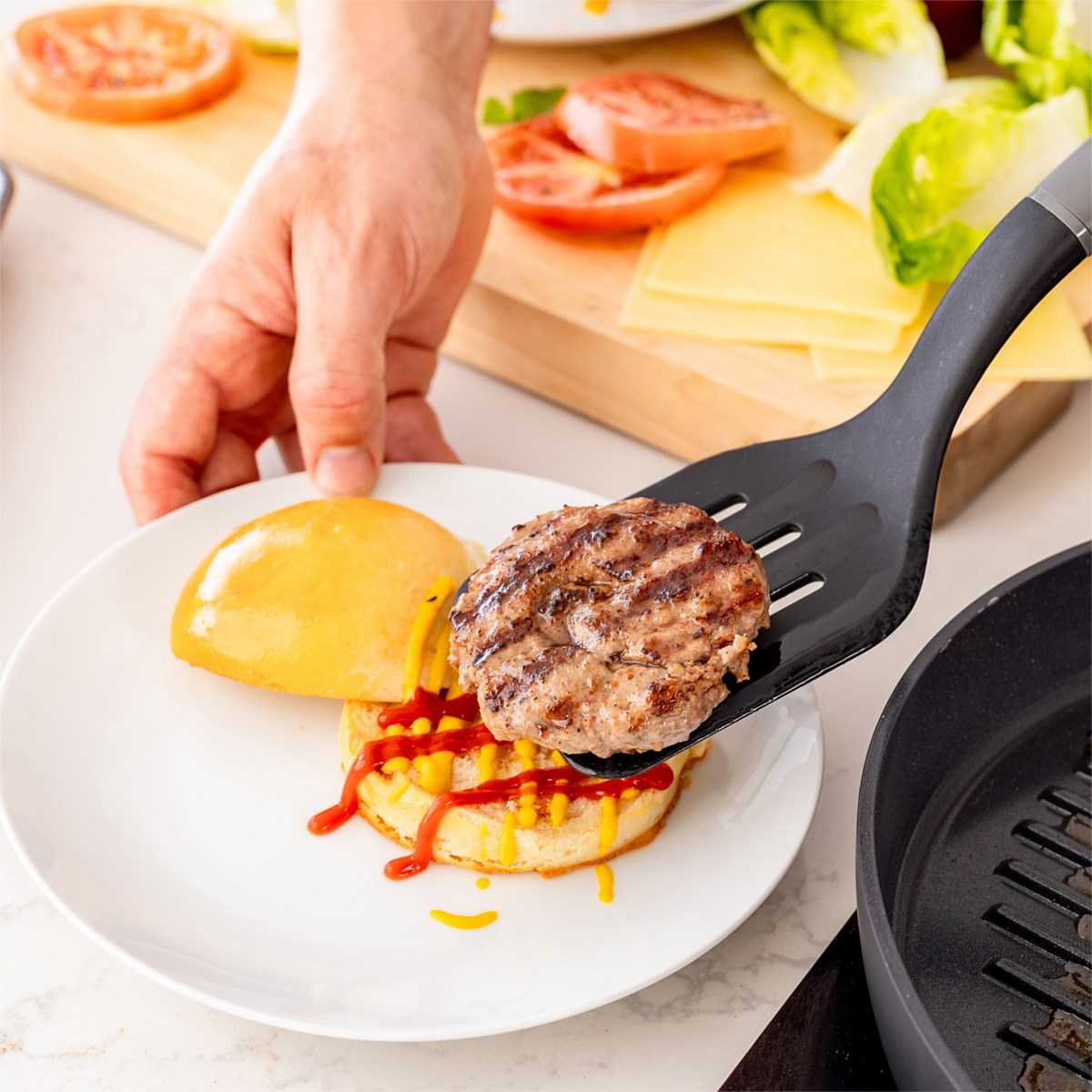 - Premium grade nylon; heat resistant to 232°C/450°F and safe for all cookware, including non-stick.