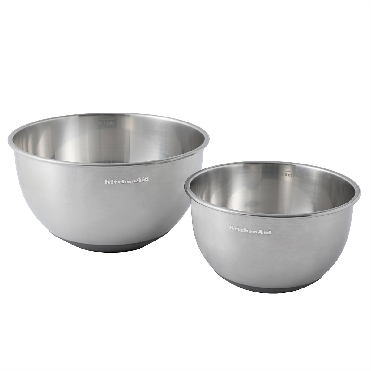 Our KitchenAid Set of 2 Stainless Steel Mixing Bowls is a versatile duo that makes food prep efficient and stylish.
