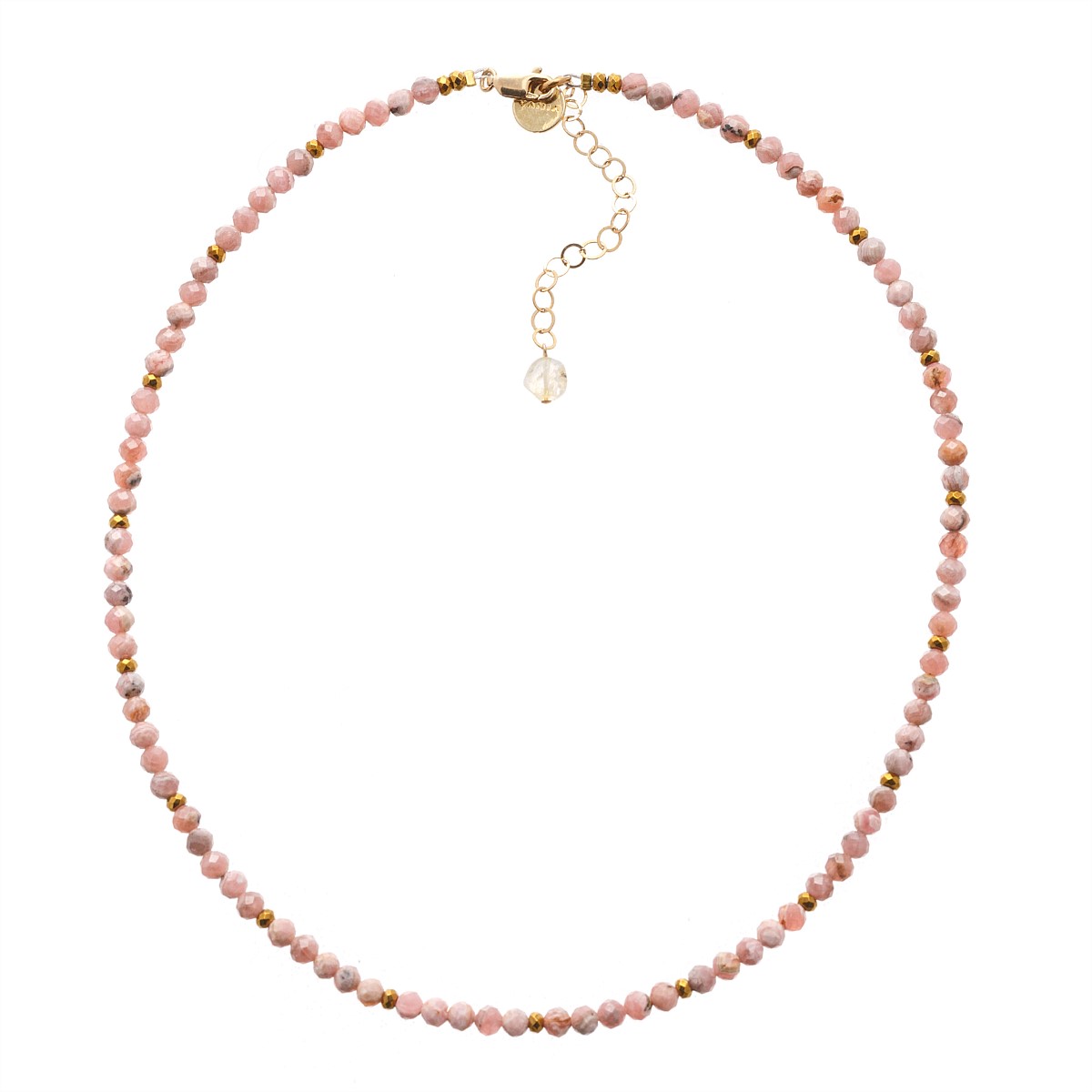 Handmade with Argentinian rhodochrosite, the rosy hues and dusty tones of the Aurora necklace give this piece understated elegance.