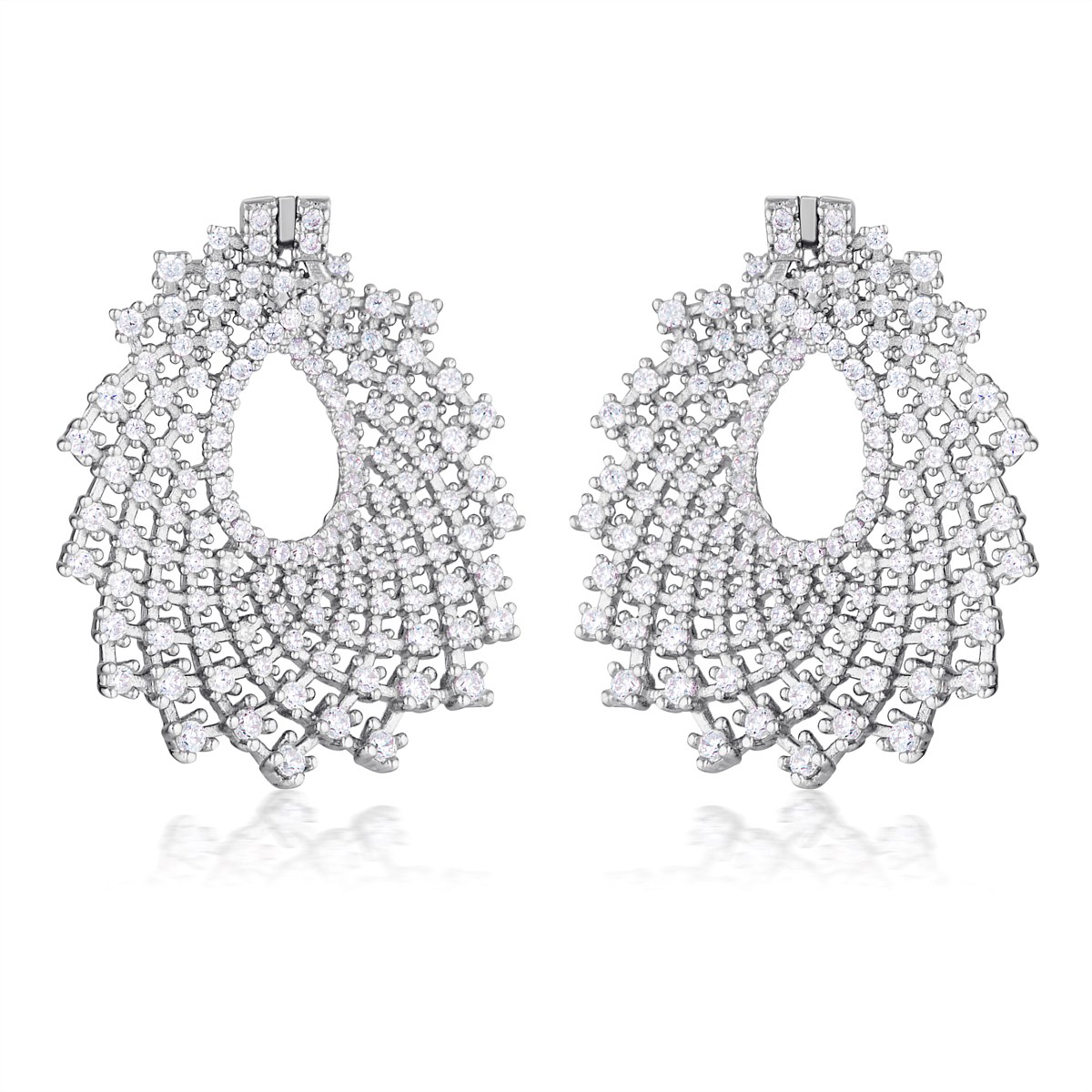 The Sundance Earrings are inspired by the desert Sun shining over one of the trendiest events of the year, The Sundance film festival. Founded by Robert Redford in 1981 with a desire to foster independence and risk taking this festival bursts into life every January when the movie makers hit Utah! Crafted from luxurious Rhodium plated 925 Sterling Silver and shining with 266 sparkling stones they measure approximately 28.1mm long by 24.32mm wide.