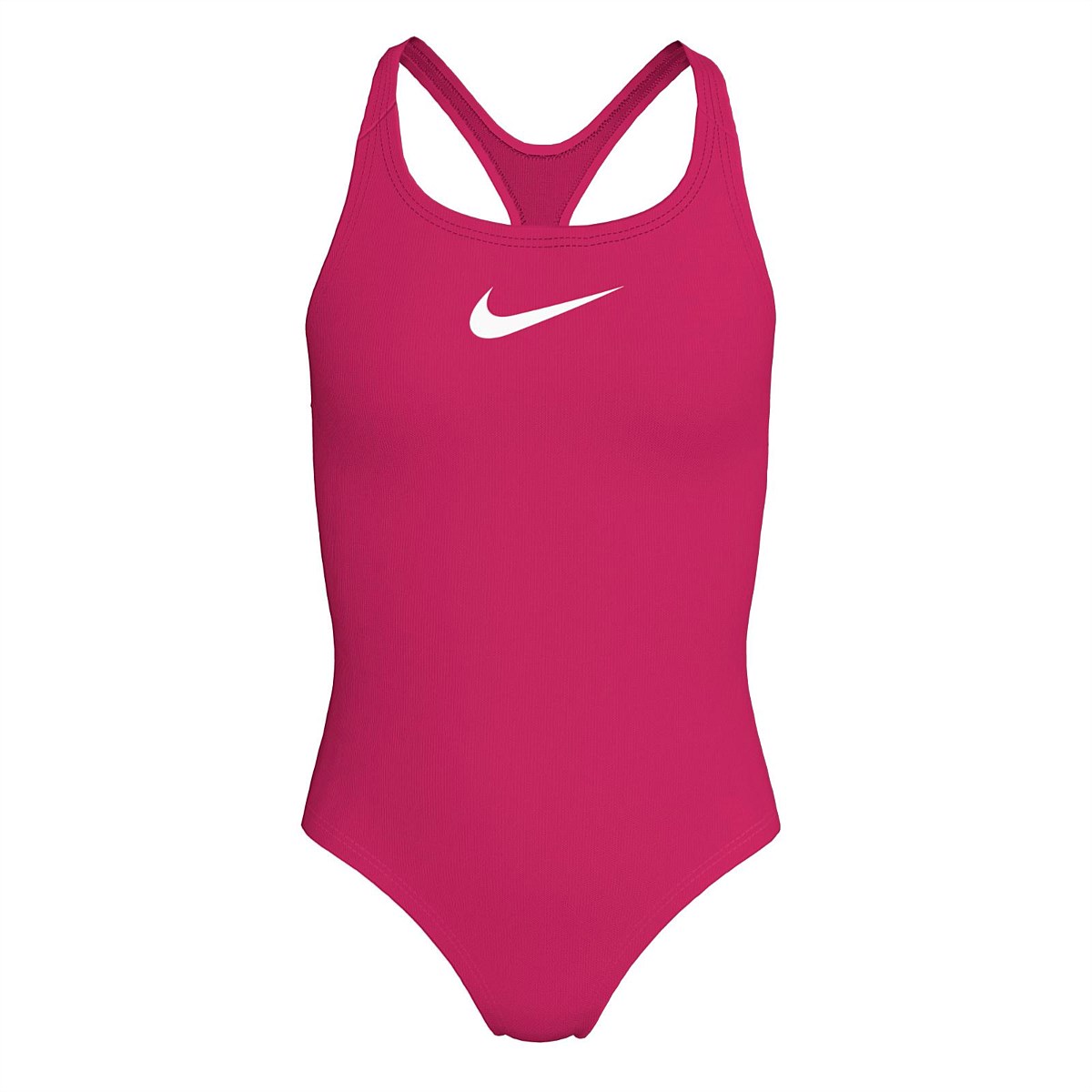 If you love to swim all season long, a basic, go-to suit is essential. This Nike Swim Effortless Essential Big Kids' Racerback One-Piece swimsuit comes in bright colors and features a bold swoosh. The racerback design allows for easy movement and the standard bottom cut will keep you covered during water play.