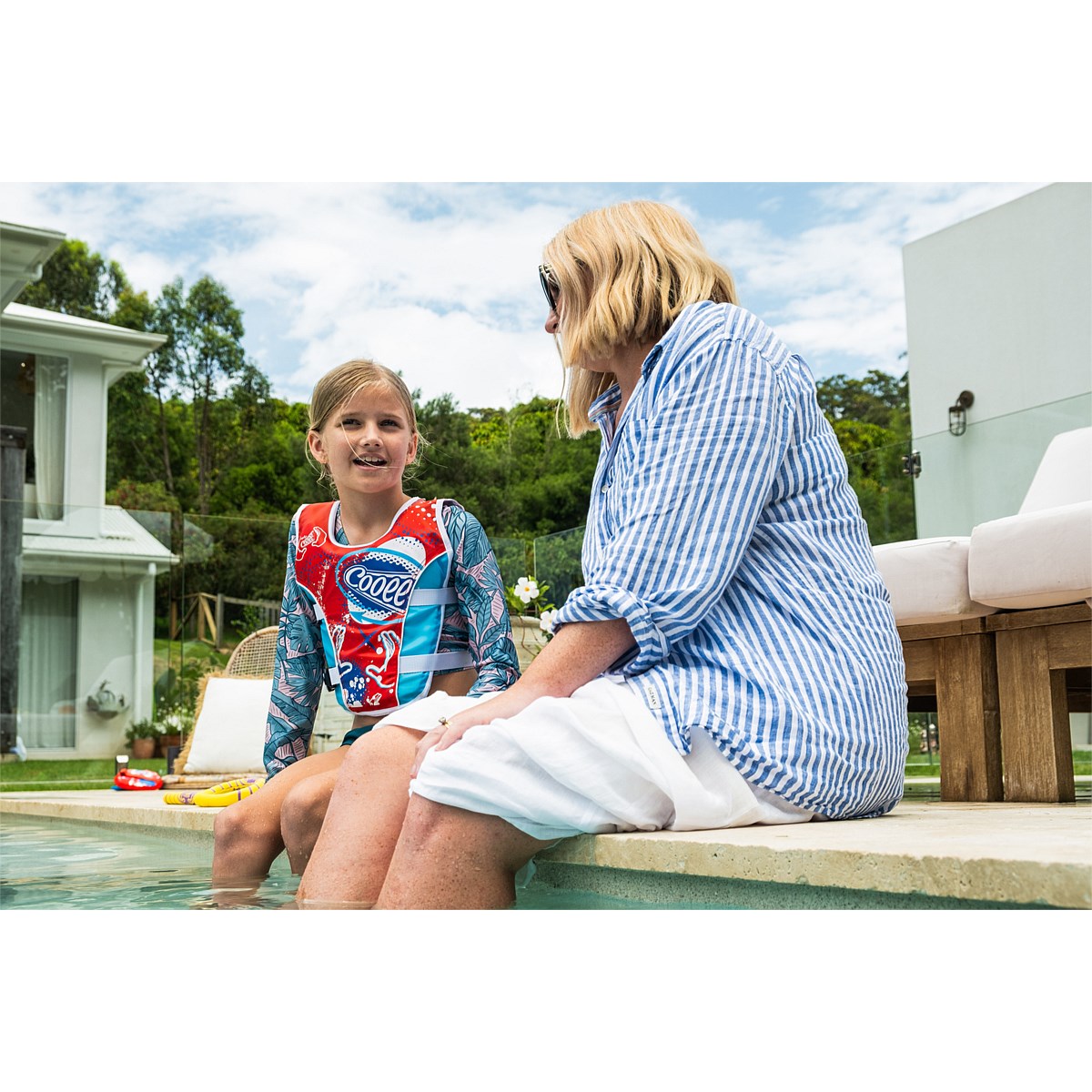 Introducing Cooee Swim Vests: With their vibrant blue and yellow designs, these vests add a fun and colorful twist to safety. Featuring an adjustable safety strap, they're lightweight and comfortable, the perfect floating device for building confidence and ensuring safety for your little ones in and around the water.