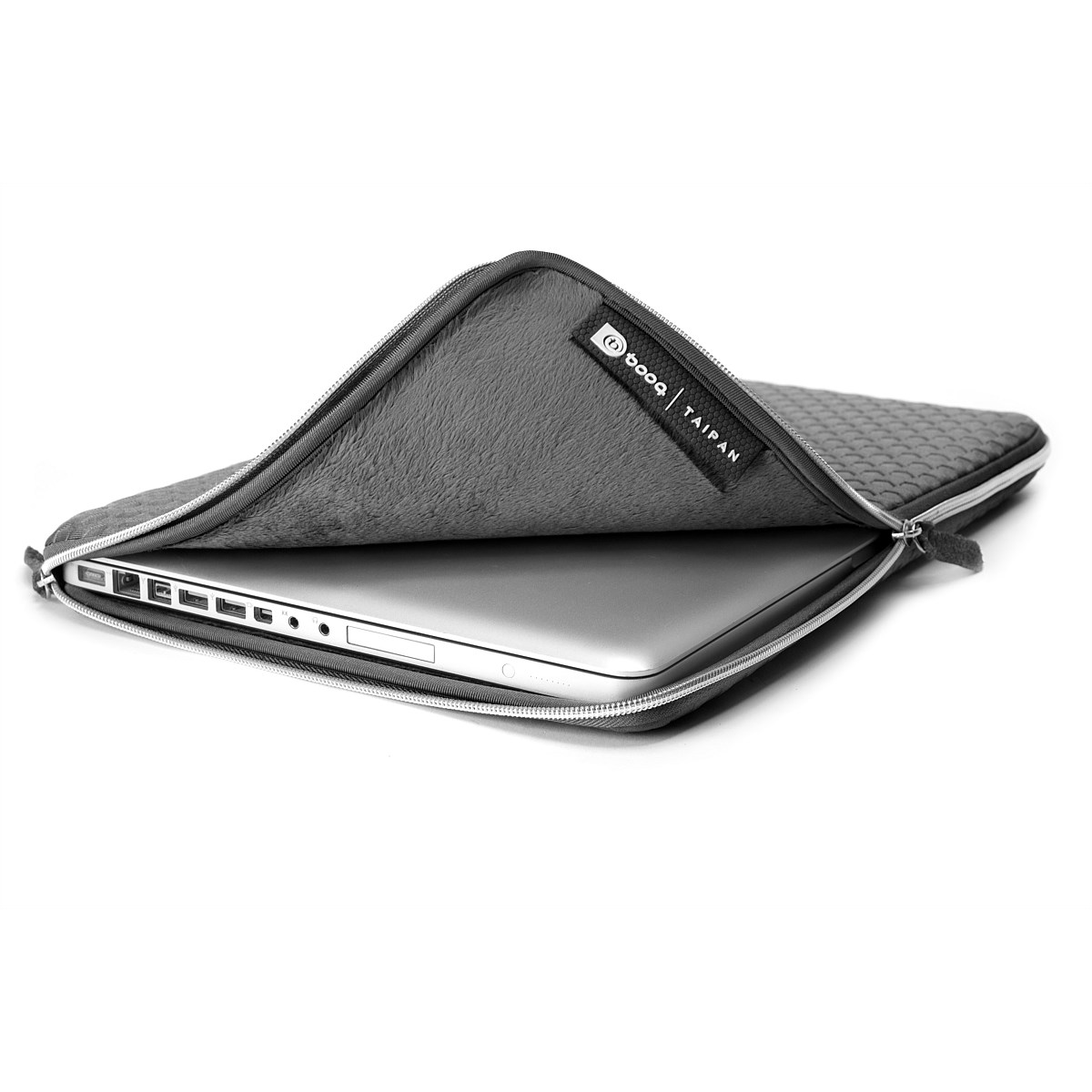 Consider Taipan spacesuit your MacBook's most elegant defense against scratches and excessive wear. Nicely padded and hand-crafted to fit your 15-inch MacBook like snake skin, its striking combination of clean, modern lines, an elegant honeycomb exterior, soft plush lining and smooth, premium metallic zippers makes this MacBook sleeve the ideal protective solution. While the sleeve's monochromatic design includes two removable black leather zipper pullers, three additional colored pullers allow a splash of color to be added.