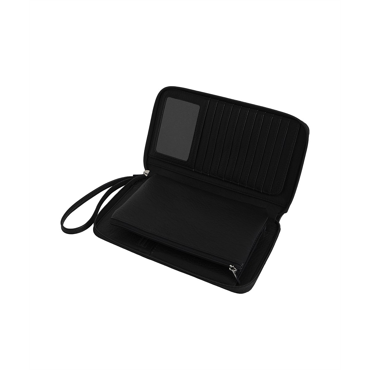 Large zip around travel wallet, Zip coin compartment, Multiple card sleeves, interior pocket sleeves, detachable wristlet,