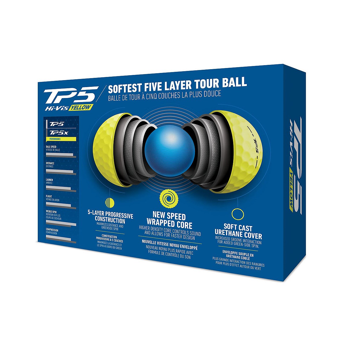The softest 5-layer Tour ball, delivering a notably softer feel and enhanced spin around the green with lower driver spin than previous generations.