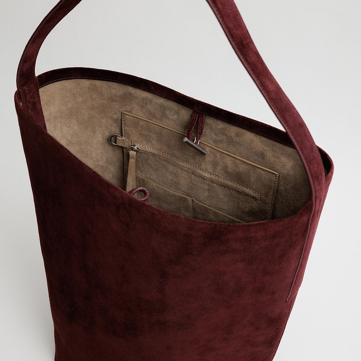 Teresa believes the devil is in the detail, or rather, the data. Enter her namesake Tote: designed for fuss-free commuting and analytics on the go. The Teresa Tote is a deep bucket style with a large interior hanging pocket, shoulder strap and custom Yu Mei toggle closure. Fits a 15 inch laptop. Strap length 58cm.