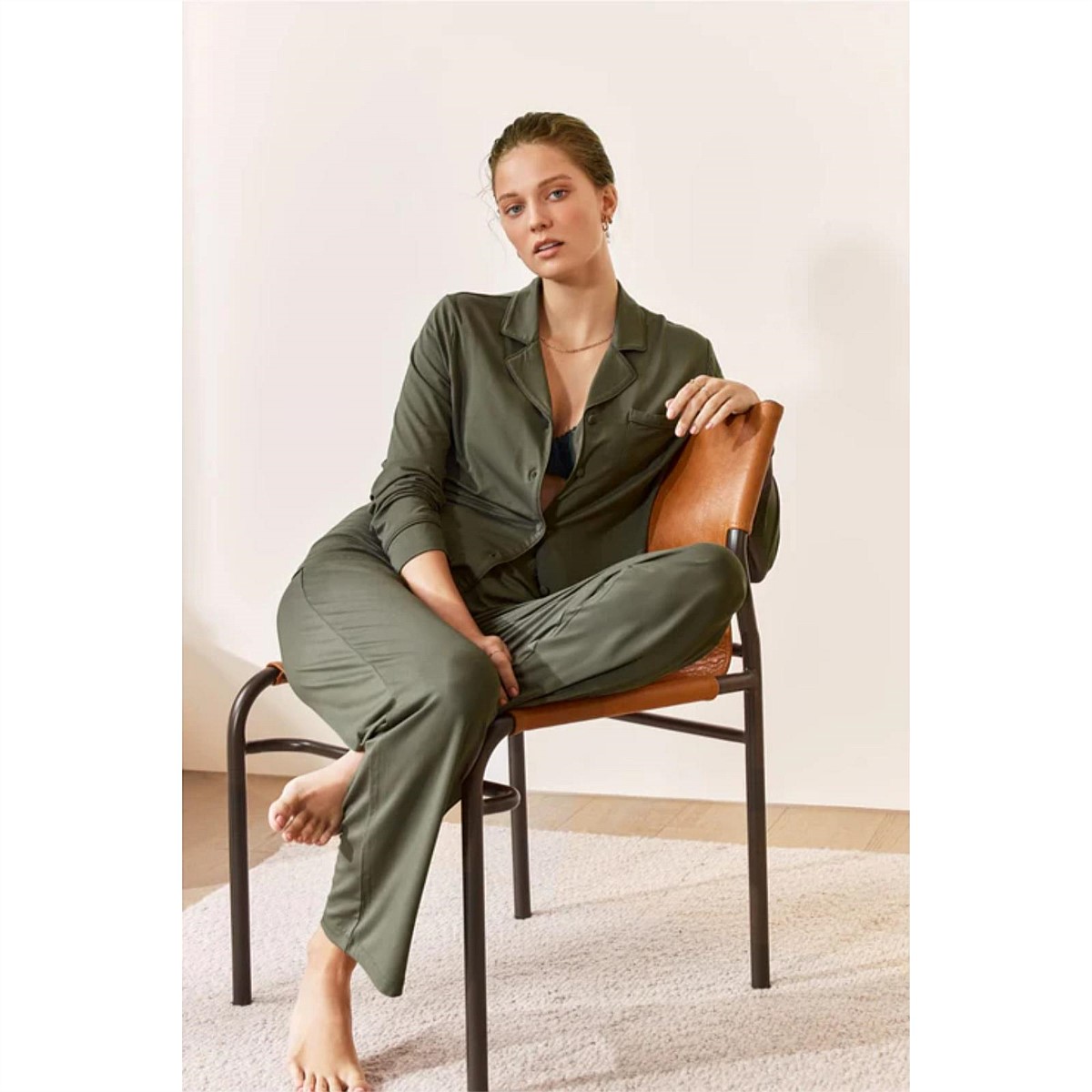 A sleepwear essential designed for ultimate comfort and breathability, the Bamboo Long Pyjama Set is crafted from buttery soft, stretchy bamboo fabric. This lightweight and temperature-regulating set is perfect for year-round wear. Featuring a classic button-through top with a chest pocket, paired with wide-leg pyjama pants with an elasticated waistband and adjustable tie, this relaxed-fit set offers effortless style and comfort. Whether you're lounging at home or winding down for the night, this set is the ultimate basic you’ll keep reaching for.