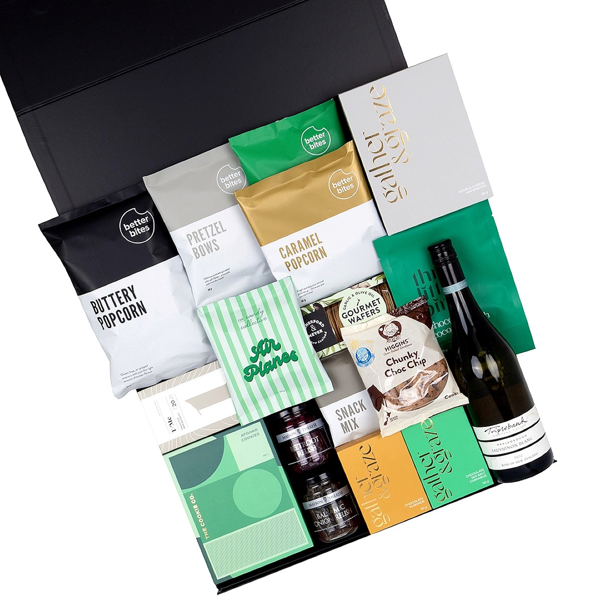The Bit of Everything gift box is the ultimate all-rounder – perfect for those who love both savoury and sweet indulgences. With a crisp Sauvignon Blanc as the centrepiece, this collection brings together artisan relishes, savoury bites, premium chocolate, and classic cookies. From gourmet wafers and popcorn to chocolates and tea, there’s something here to suit every taste. It’s a generous, versatile gift that makes an impression for any occasion.