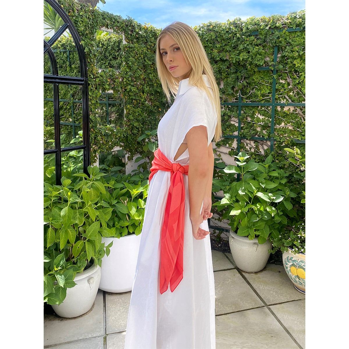 This beautiful New Zealand designed scarf in two toned coral is such a perfect pop of elegant colour.