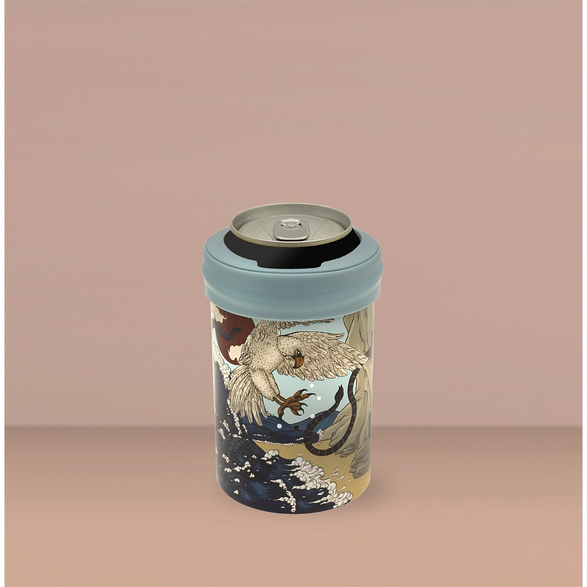 This can/bottle Cooler, Blue Wave, is by Laura Shallcrass. Laura is an artist based in Queenstown, New Zealand. Laura trained as an illustrator and graphic designer, before becoming increasingly drawn by the world of fine art.