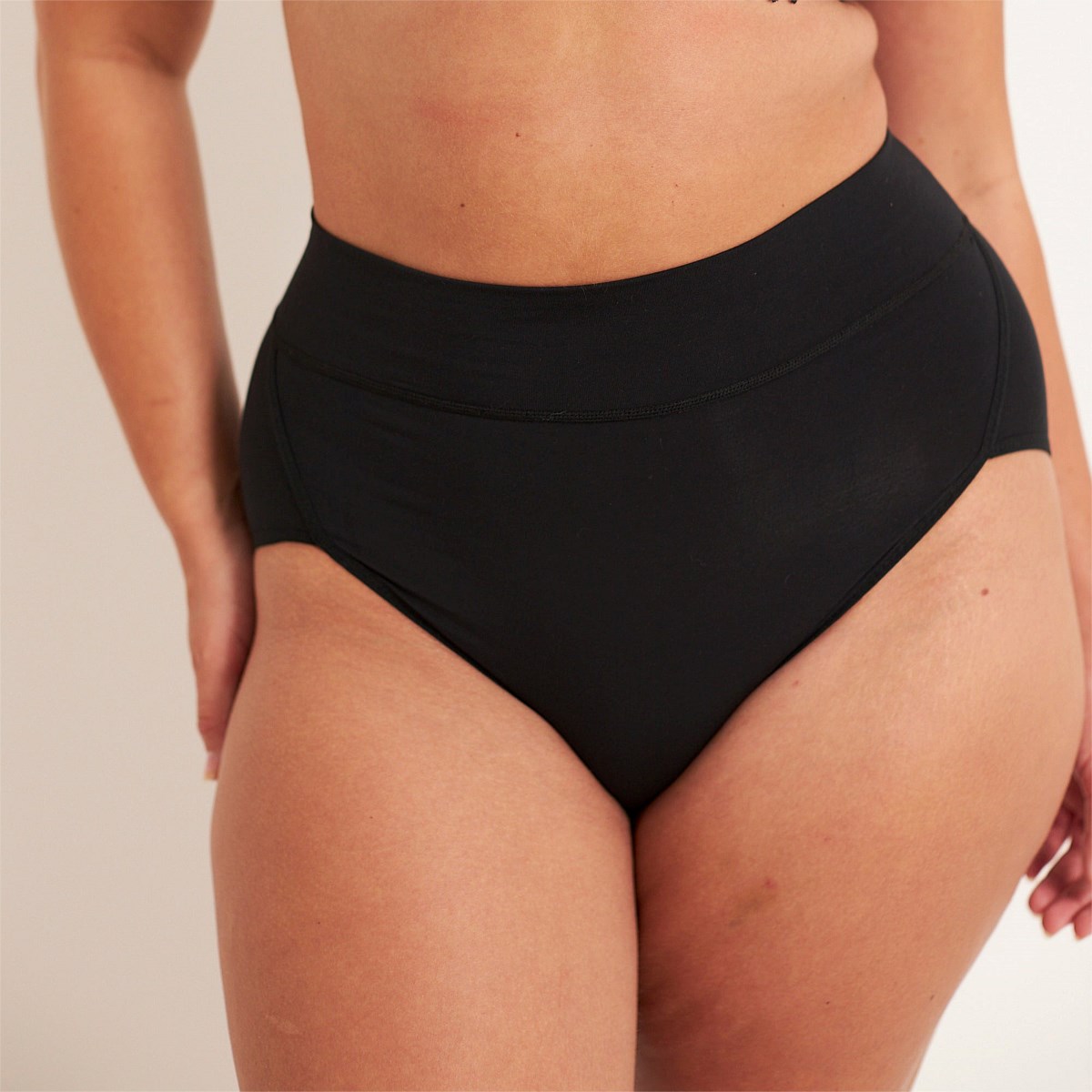 With a highwaist and a double layered waistband offering extra support, the Highwaist brief has a unique wrap around legline bound in the softest elastic for comfort and to eliminate visible panty line.