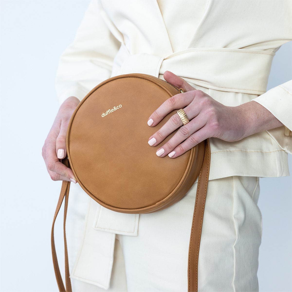The Josie’s unique circular leather handbag shape makes it the perfect crossbody for any fashionista. A zip inner pocket keeps your belongings safe whilst the magnetic outer pocket gives you access on the go. And there's still plenty of space for your phone, purse and keys!