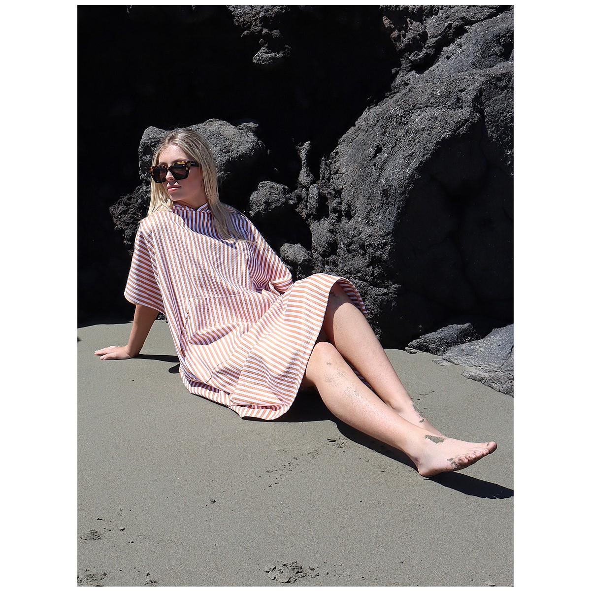 Made from soft microfibre waffle fabric, the Dark Hampton sand free hooded towel blends sustainability with style.