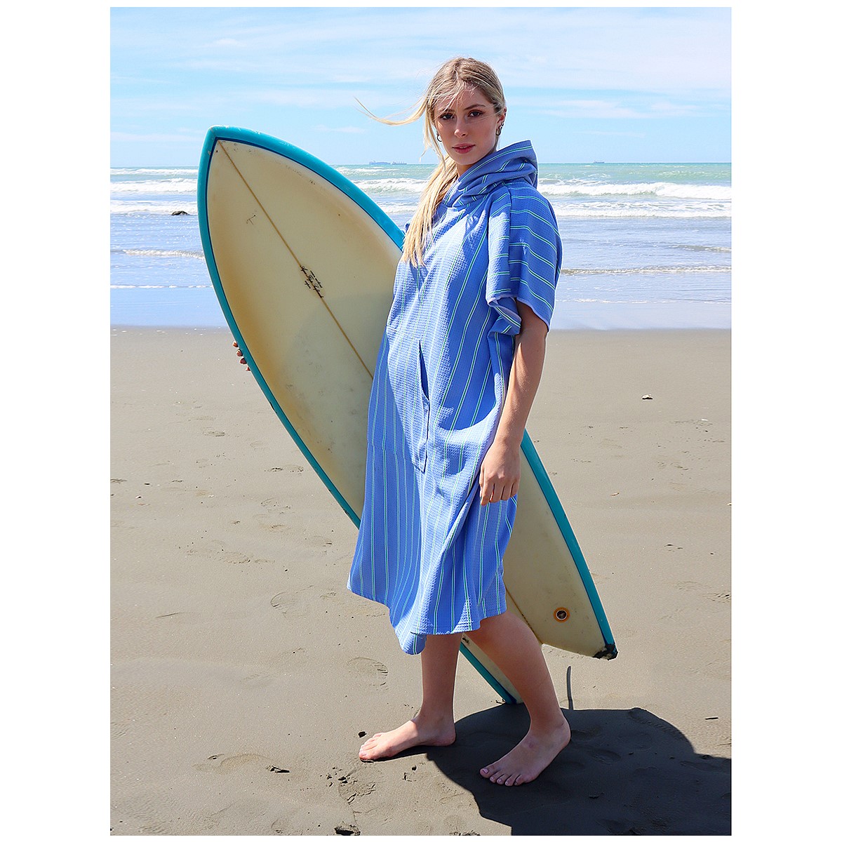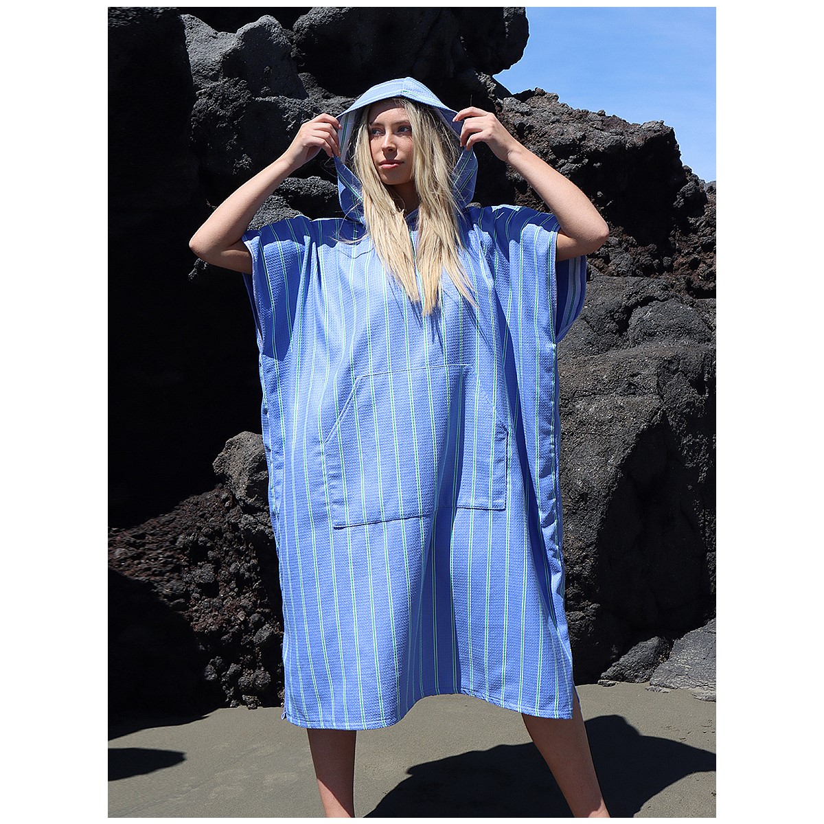 Made from soft microfibre waffle fabric, the Dark Hampton sand free hooded towel blends sustainability with style.