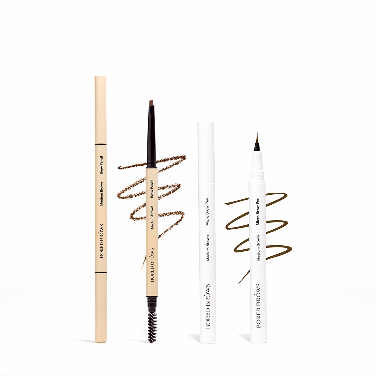 This duo combines two must-haves in one: a precision micro pen that mimics real brow hairs for natural definition, and a pencil for fuller, bolder brows. Use them together or alone to create everything from soft, feathered brows to a more polished, structured look.