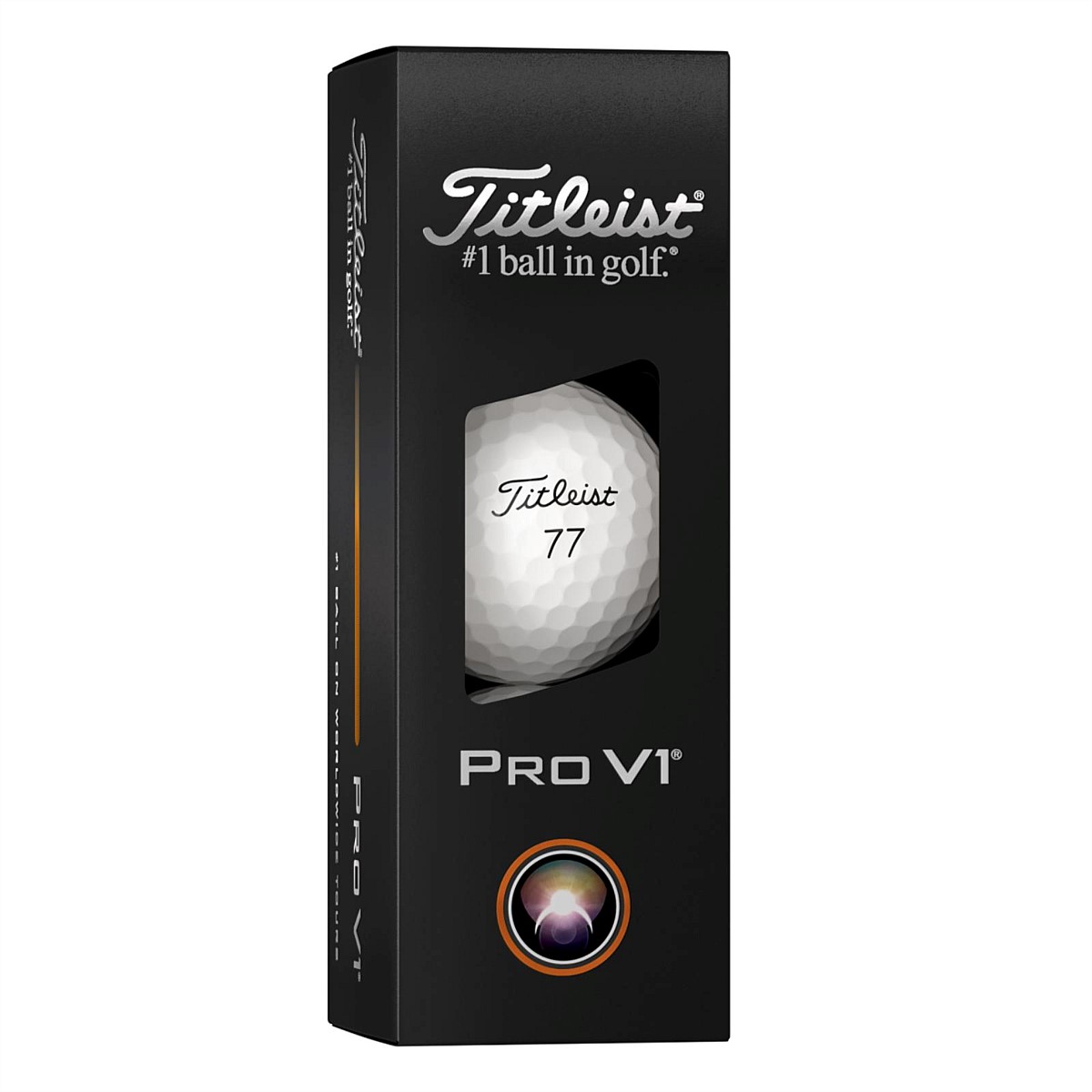 Titleist® Pro V1® offers total performance and features long distance, very low long game spin, penetrating flight, Drop-and-Stop™ greenside control and very soft feel.