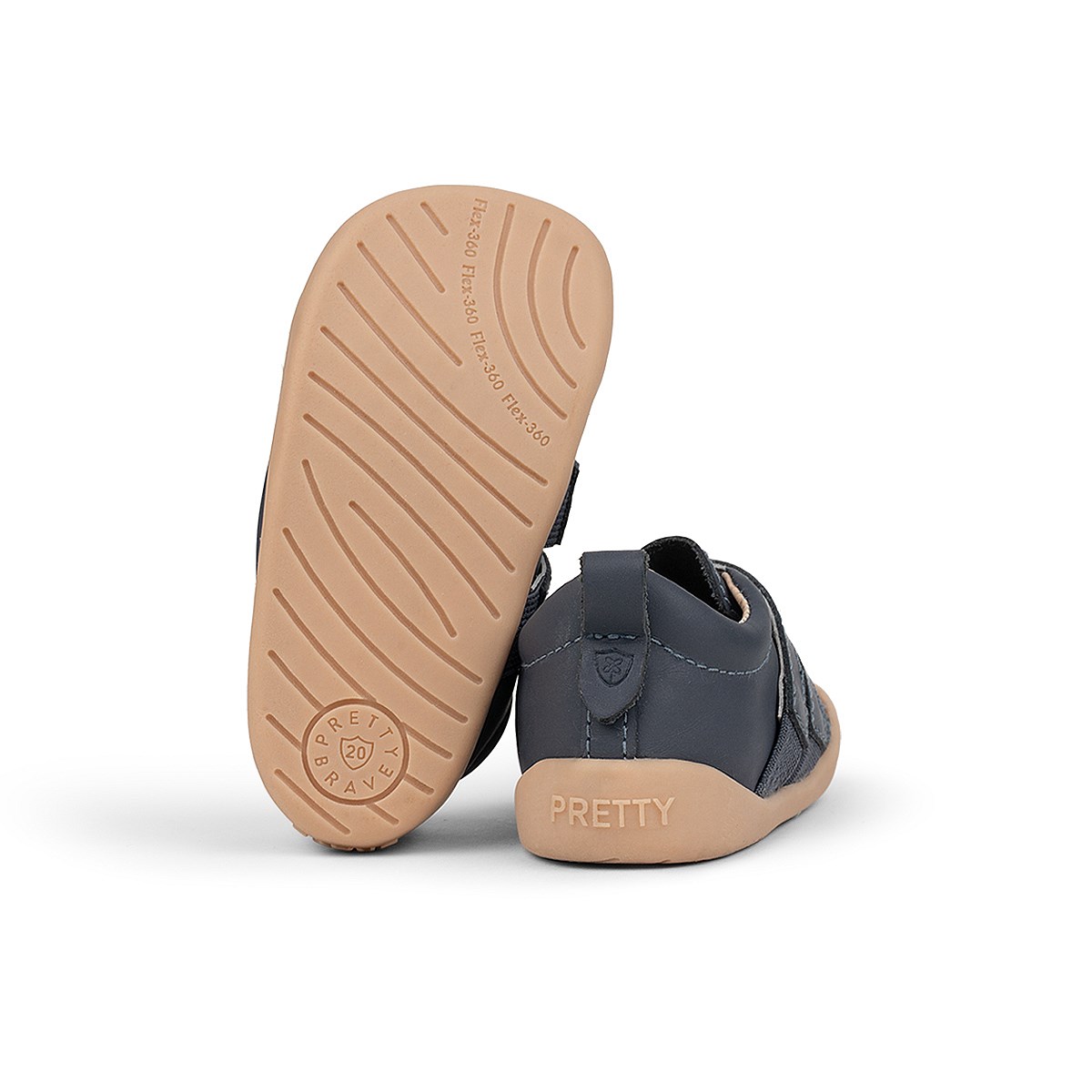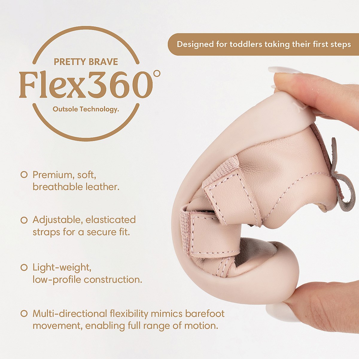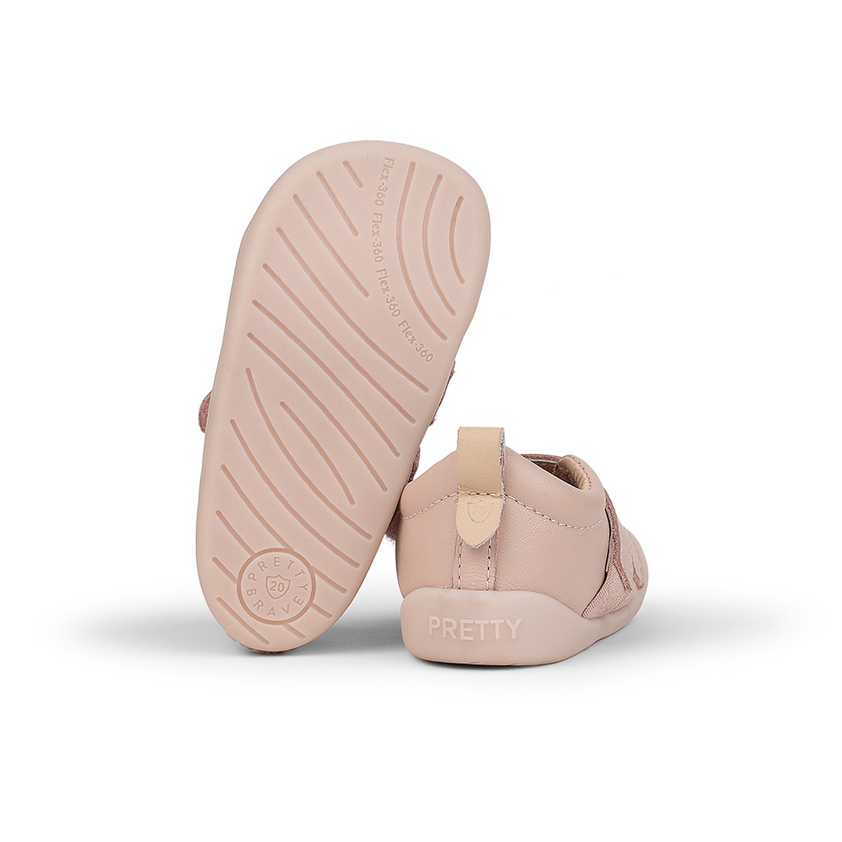 From the all-new Pretty Brave Toddler Range comes Toto, designed to support little ones as they take their very first steps. Created especially for the crawling-to-walking stage, Toto is crafted from premium leathers and features a lightweight, flexible design that moves with growing feet. The custom Flex 360 outsole promotes natural movement, splaying and comfort, while padded ankle support and double Velcro straps ensure a secure fit. With easy foot access and a secure fit, this style helps make the step from crawler to walker that much easier.