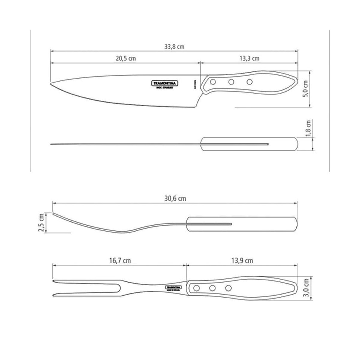 Tramontina's Churrasco Line offers wooden handles that resist time and moisture, and stainless steel blades guarantee the perfect cutting of the meats.