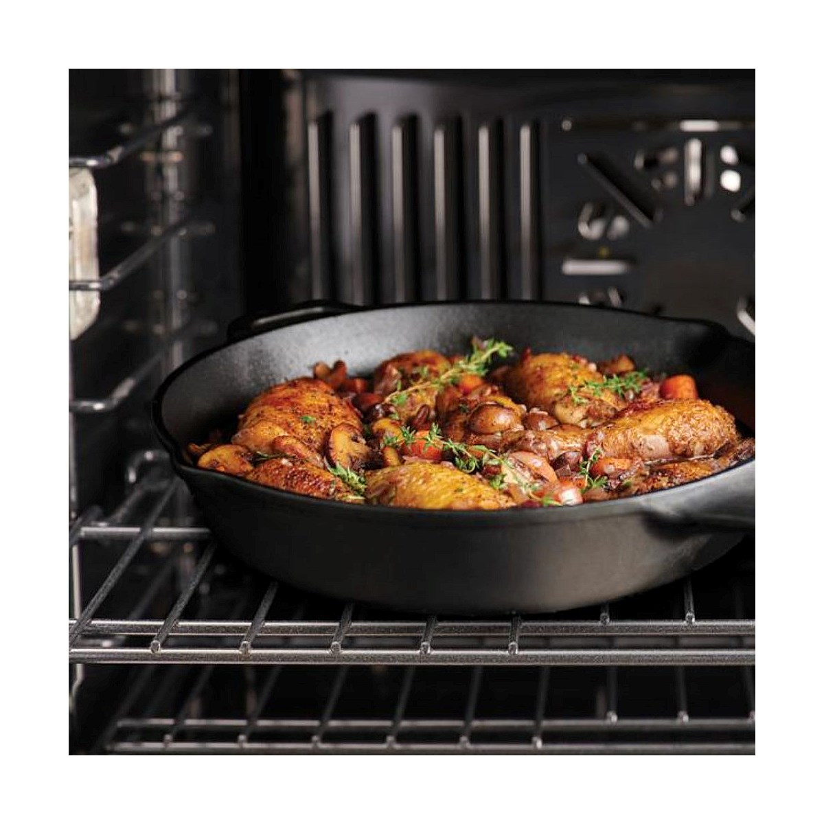 - Pre-seasoned cast iron