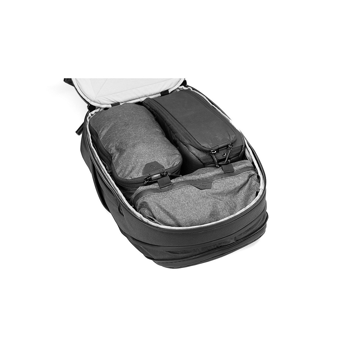 Note: only fits Peak Design Camera Cubes when fully expanded. 45L Travel Backpack recommended for carrying lots of camera gear.