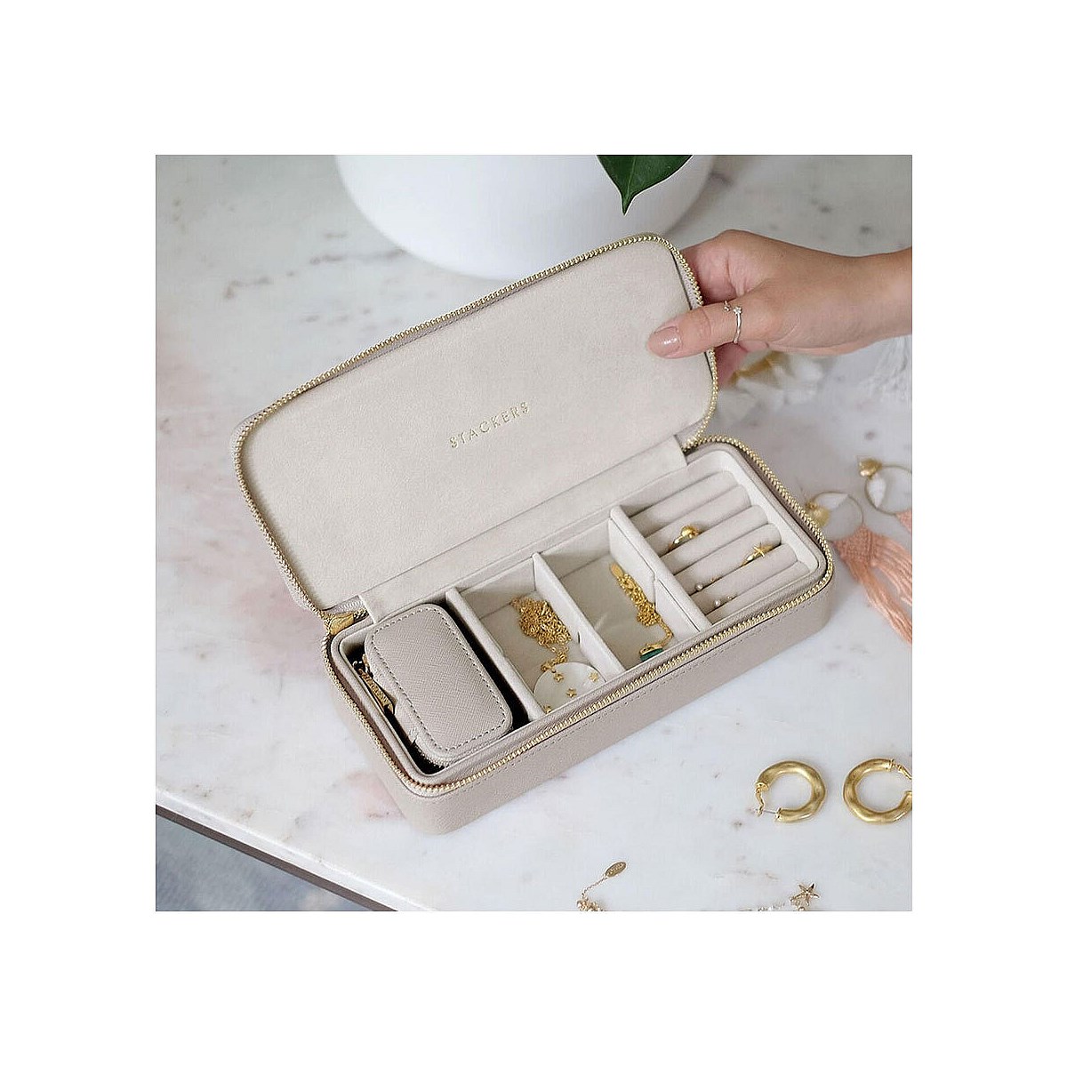 Featuring a soft velvet lining to keep your special pieces safe on-the-move, this Large Travel Jewellery Box should definitely have a place on your packing list.