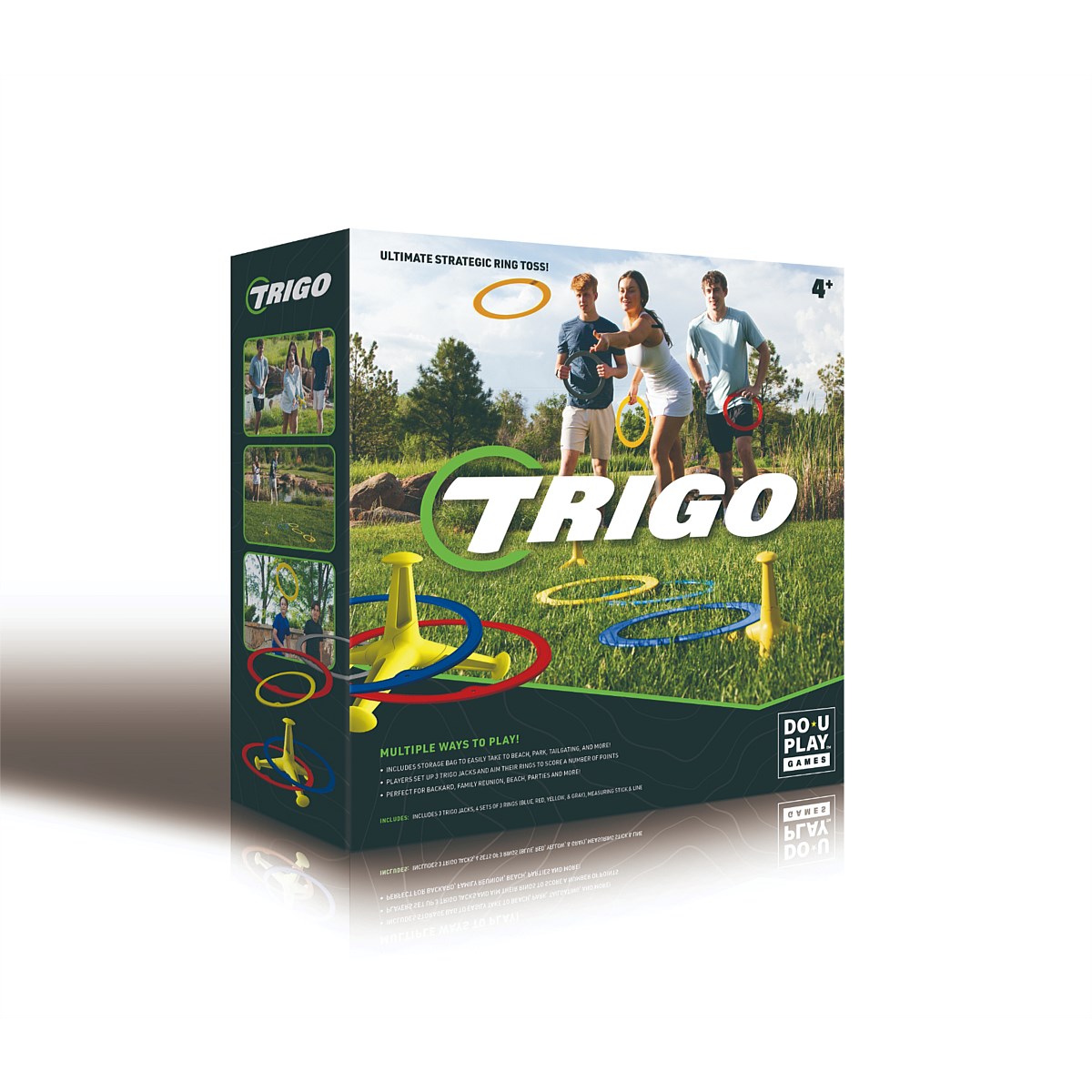 Play Anywhere: Trigo Ring Toss is easy to play and perfect for backyard fun, tailgates, family gatherings, parties, and anywhere you want to entertain friends and family. Trigo Field Dimensions: Minimum size 10' x 6'. Play on a flat surface like grass, sand, or indoors on matting.
