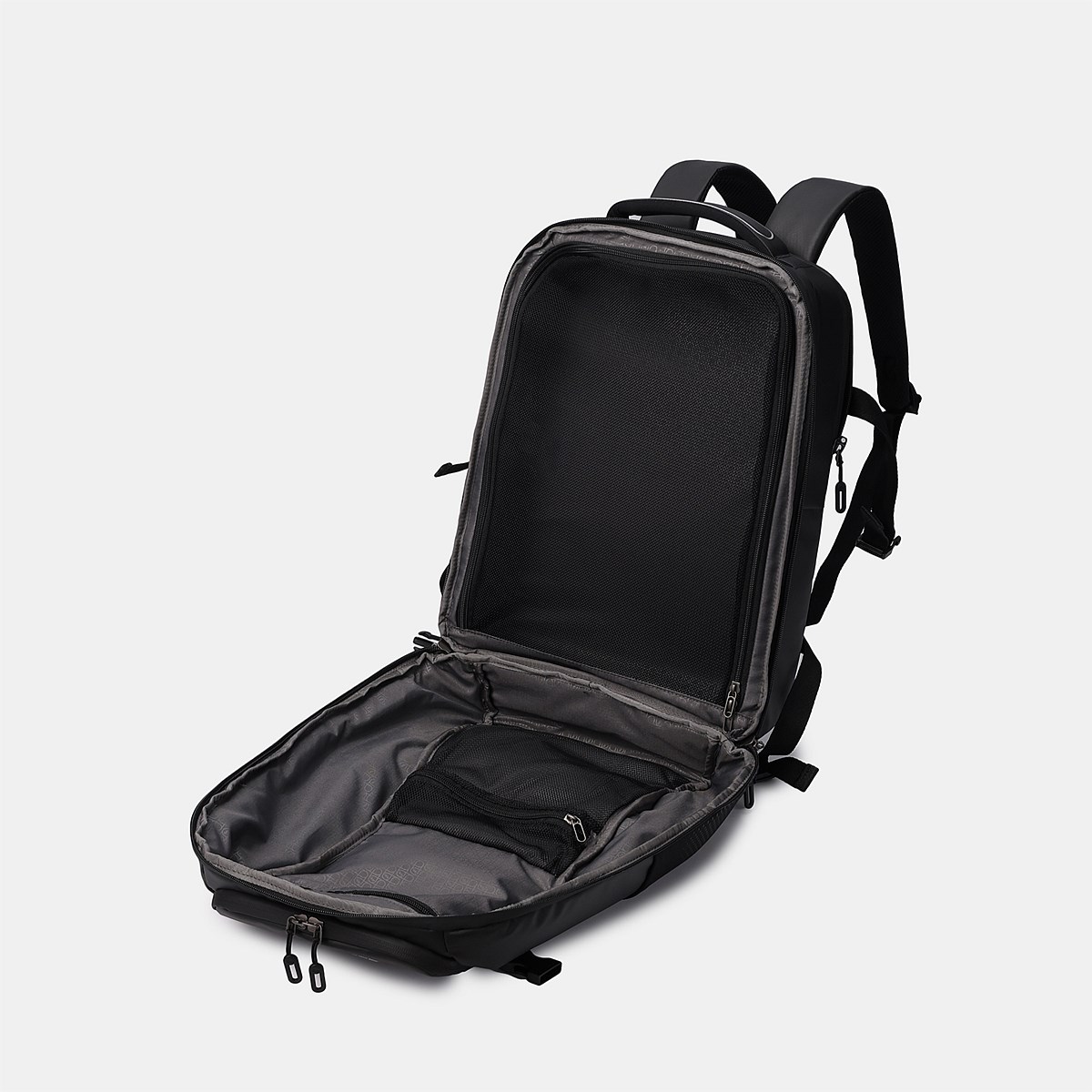 Dedicated, expandable compartment for clothing storage. Full opening for easy packing. Zipped divider panel to keep your clothes in place.