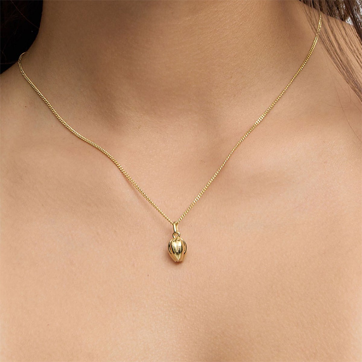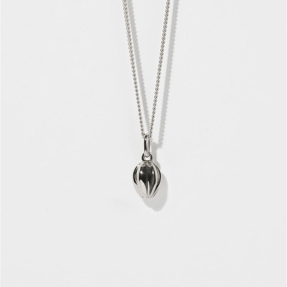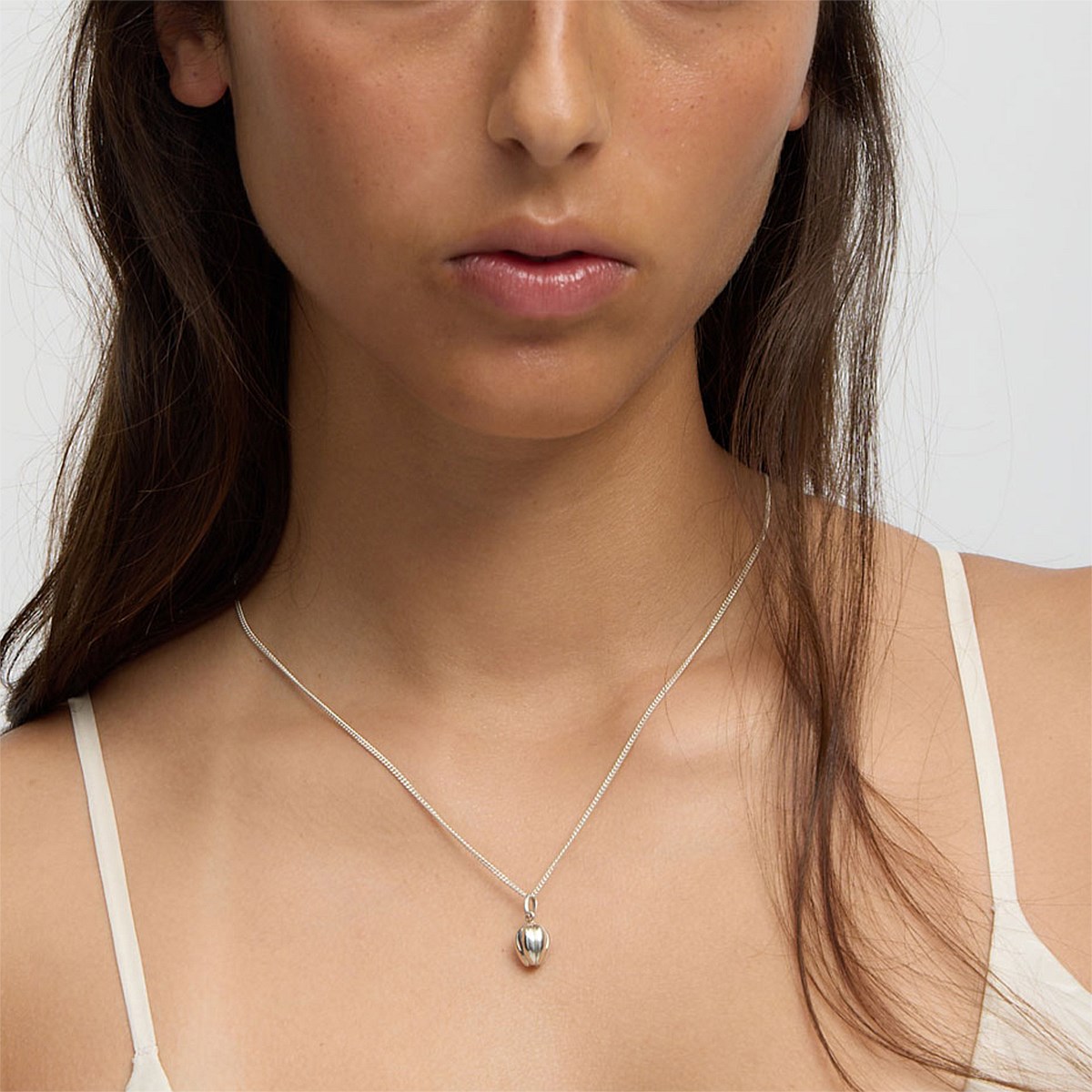 A small closed tulip bud suspended from a fine chain. Refined and subtle, this piece offers a quieter interpretation of the tulip form, celebrating potential and growth through restrained design. An easy, meaningful layer for daily wear.