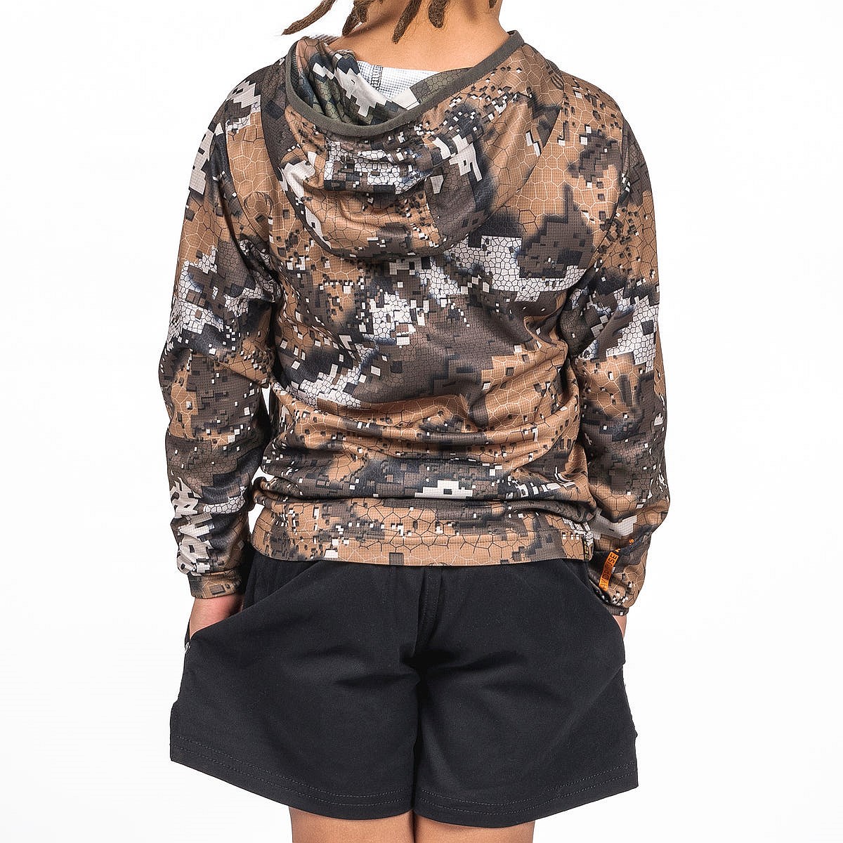 The key to comfort while performing high-intensity activities in the heat of summer is protecting the skin from the sun and removing the uncomfortable sweat that comes with the territory. The Tyro Vantage Hoodie has been designed for this job by covering as much of the body as possible and providing the best technology in moisture-wicking fabrics. The hood and integrated face veil can be used both to shield from the sun and also to provide a stealthier approach for close quarters stalking.