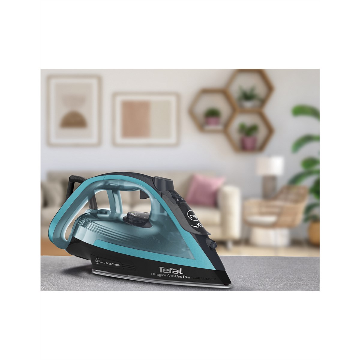 The TEFAL Ultraglide Anti-Calc Plus Steam Iron offers easier ironing sessions day after day, with results you can count on and performance that's built to last. Effortless maintenance and long-lasting performance are within reach, with the exclusive removable calc collector system ensuring easy cleaning and longer product life. The smooth-gliding Durilium Airglide soleplate is scratch resistant and durable, with 100% active steam holes for maximum steam coverage. Give your garment care experience an upgrade with 2400W of power for a quick heat-up time, an auto-off feature for everyday ironing with total peace of mind, a continuous steam output of up to 45 g/minute to ensure high-efficiency ironing sessions, and a steam boost of up to 185 g/minute to tackle thicker fabrics and stubborn creases. Also, the steam and soleplate kills up to 99.99% of viruses, bacteria & germs – helps to keep your family safe*.