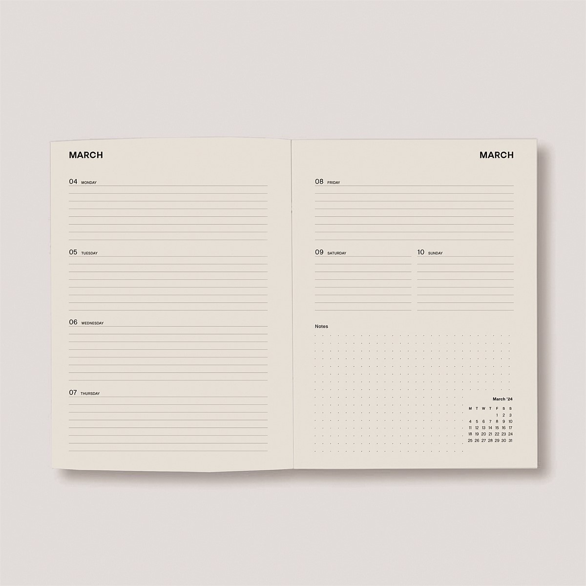 - Monthly double-page planner