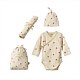 - Includes Kimono Bodysuit, Knotted Beanie, Footed Rompers and Wrap