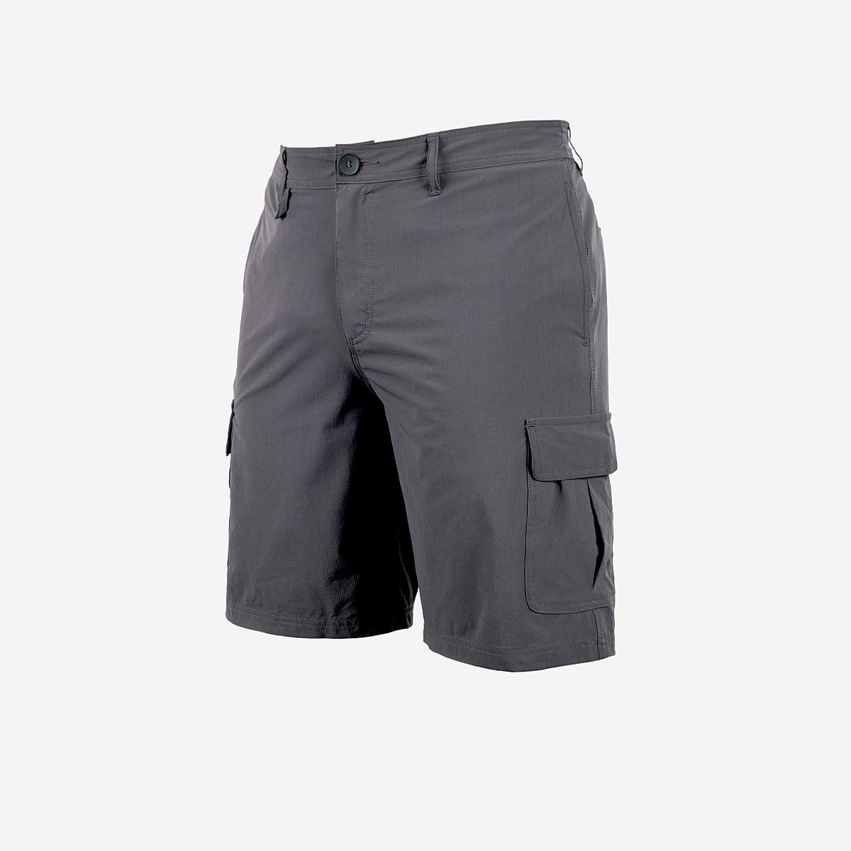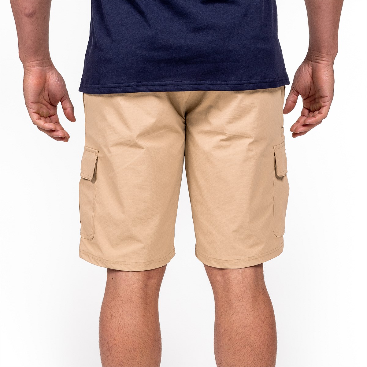 Full specs: Stretch ripstop woven fabric, 90% Nylon 10% Spandex ripstop, Cargo short style, Quick drying, 4-way stretch, 2 lower side cargo pockets, 2 upper pockets, 2 back pockets, Reinforced plier pocket, Belt loops with key loop, Triple stitched crotch & side seams, Recycled packaging