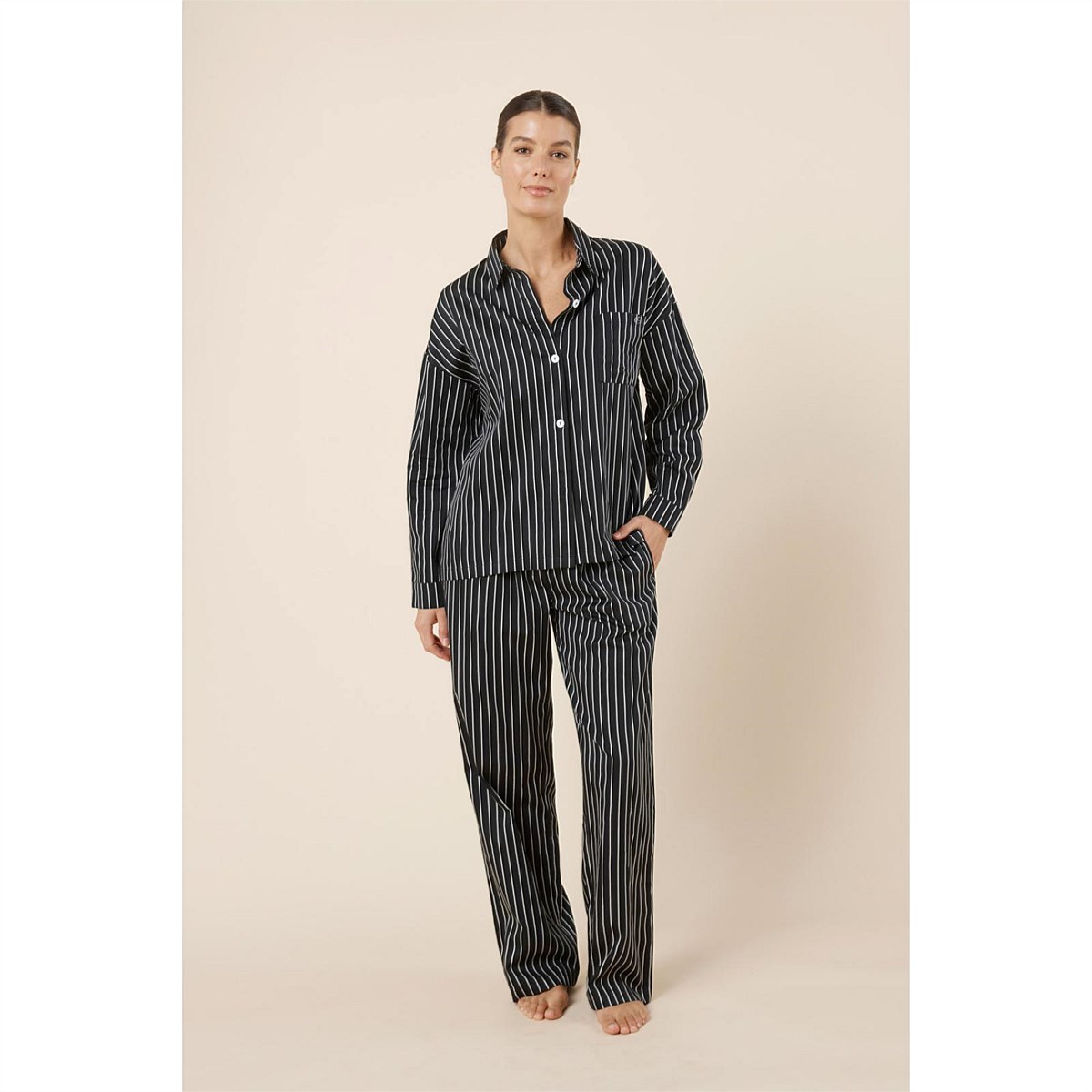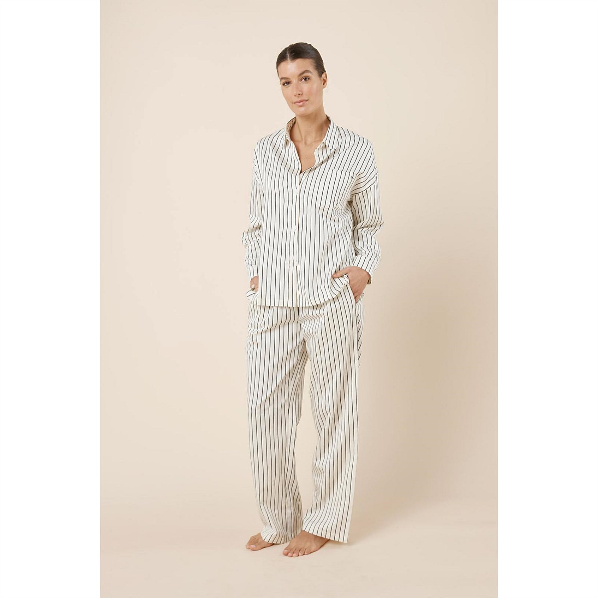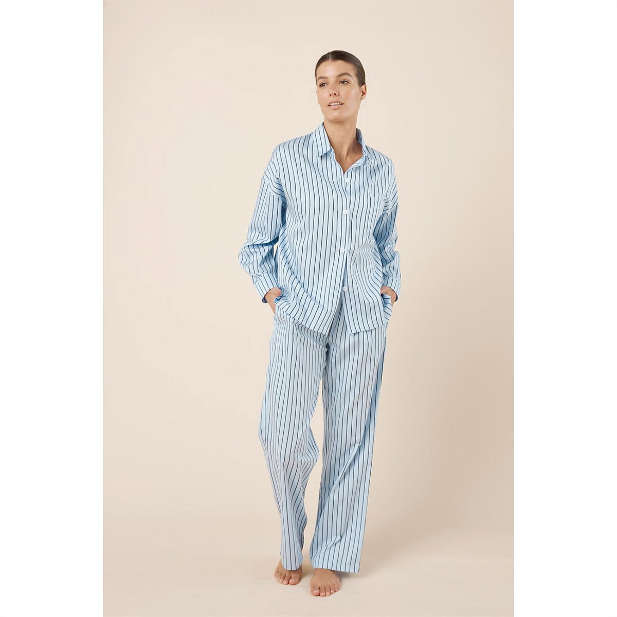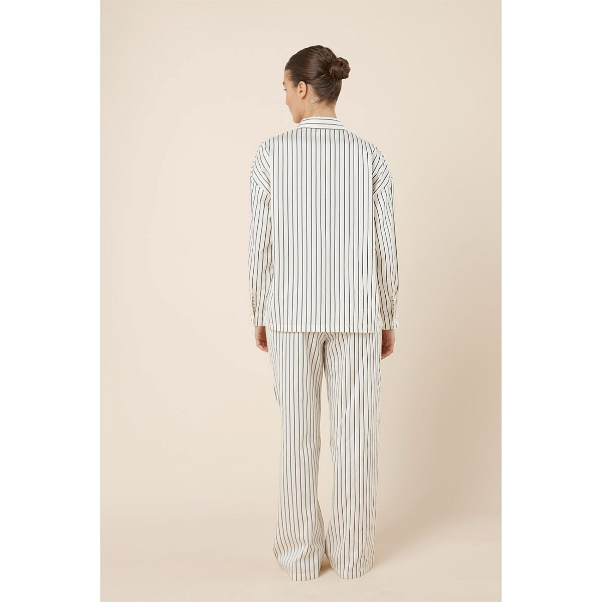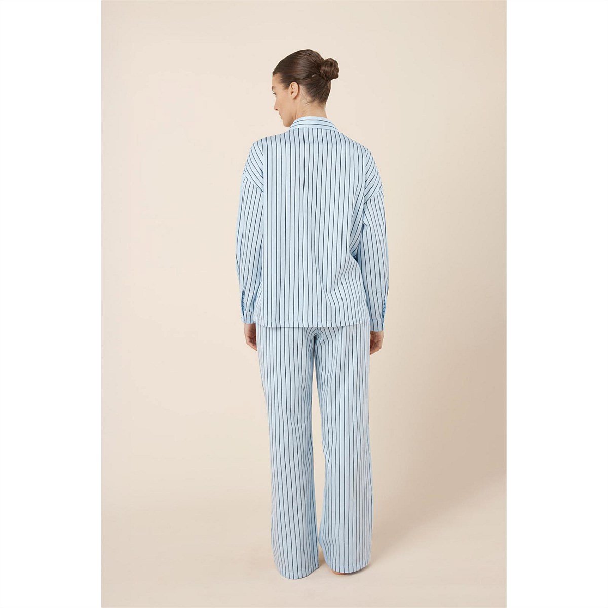 The Willow Cotton Striped PJ Set brings a crisp, shirt-inspired feel to relaxed sleepwear, with stripes and an oversized wide-leg silhouette designed for effortless comfort from bedtime to slow mornings.