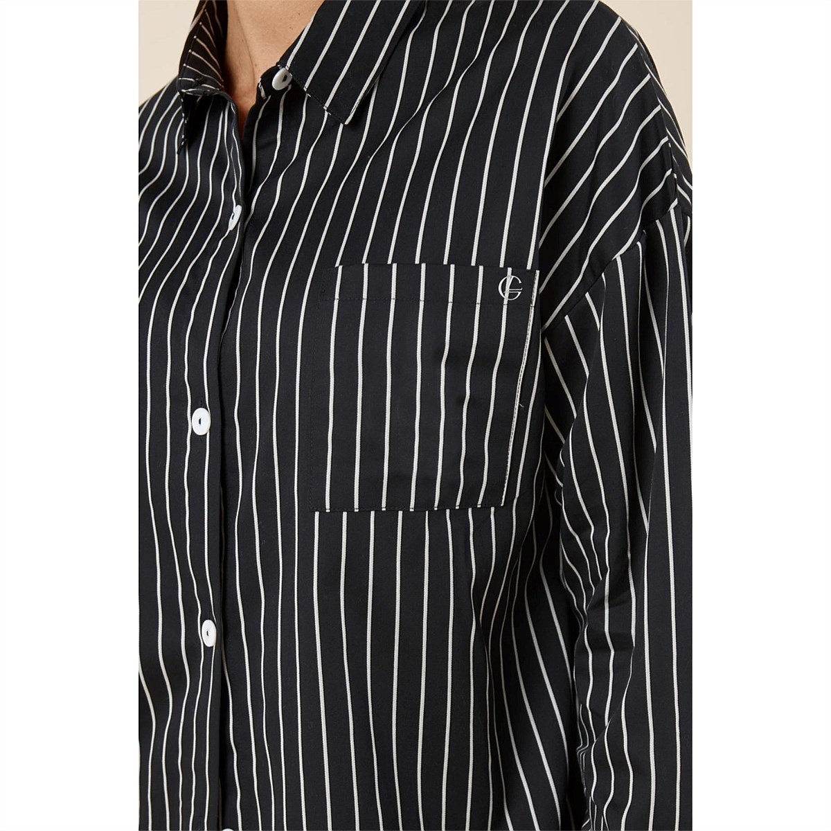 - Style Top: Shirt inspired, pocket, monogram detail