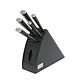 New technology and new patented designs deliver style, balance, grip and consistent sharp blades for ease of use. This new set contains five triple rivet handle knives that include an attractive branded stainless steel end cap. The knives are safely housed in a contemporary rubber wood block with built-in sharpener.