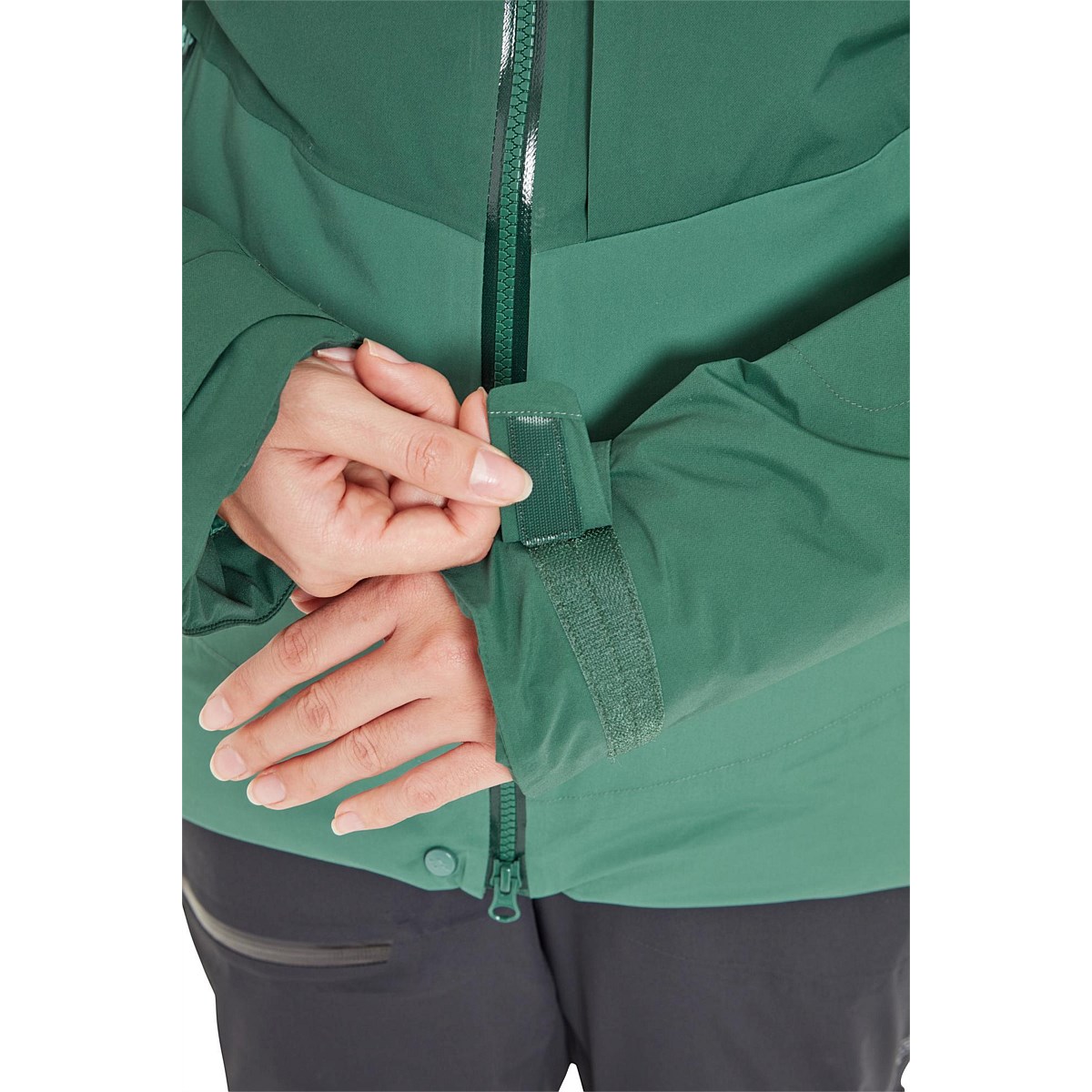 - 2-way YKK® VISLON® AquaGuard® front zip with internal storm guard.