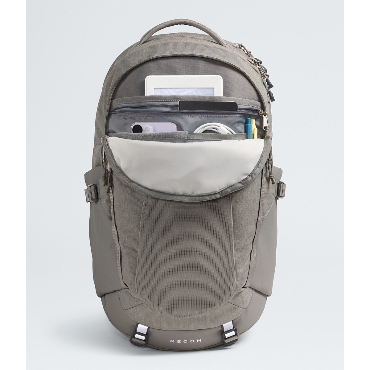 - Front compartment with internal organisation, secure zip pockets, and a padded tablet sleeve