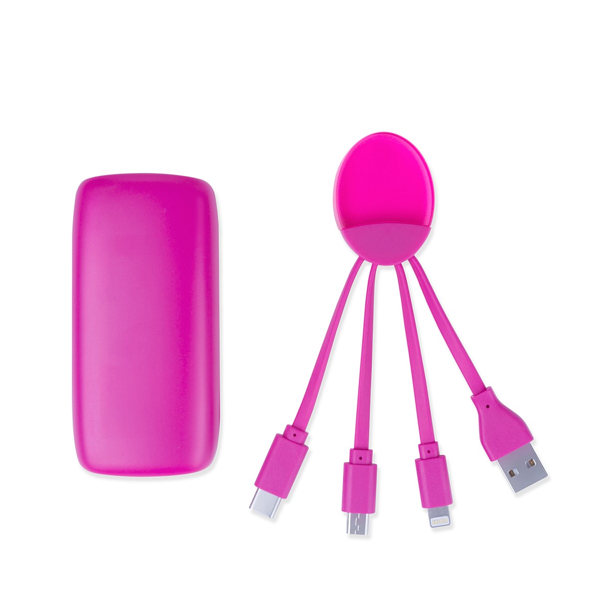 Portable charging cable. Featuring USB, Lightning, Type C, Micro USB adapters all-in-one.