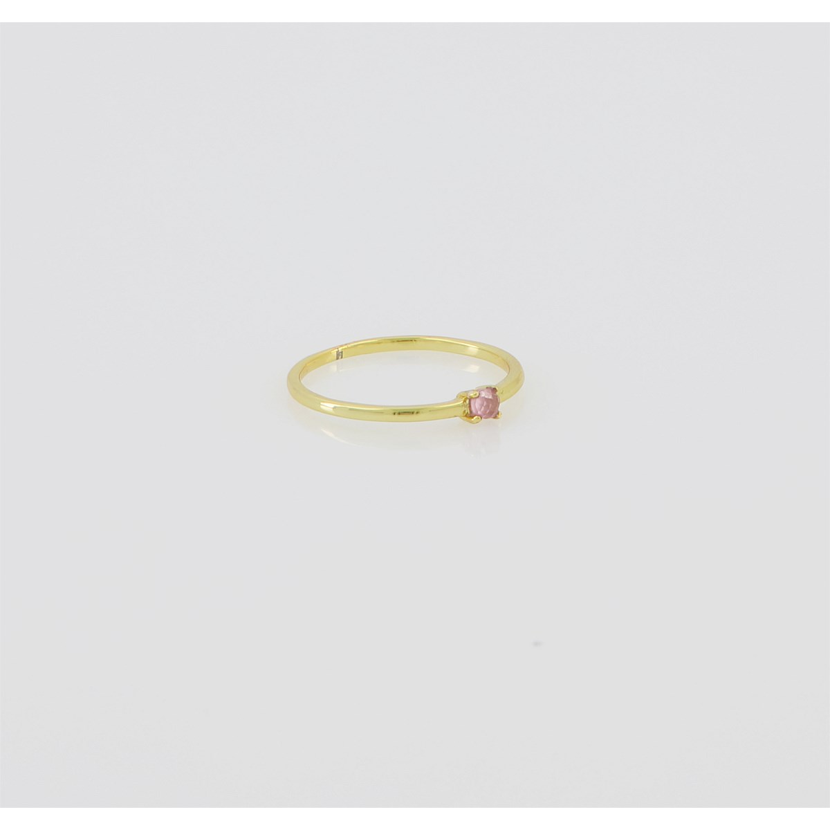 Fine gold band with a rose quartz crystal set in 18k plate.