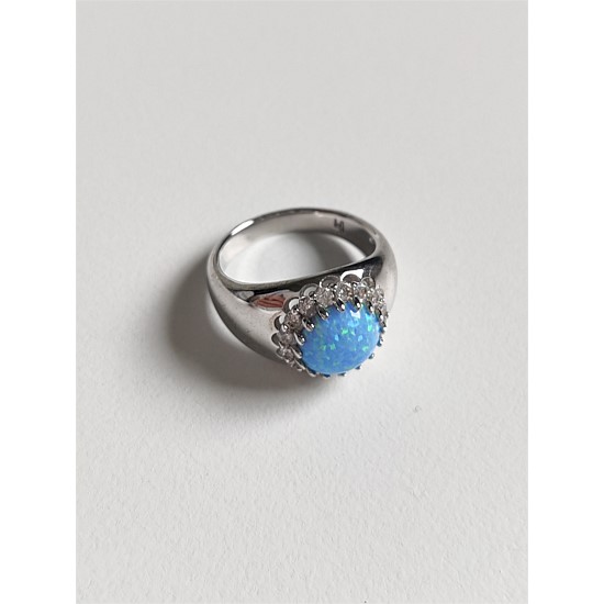A brilliant blue opal set in a flower claw and 925 sterling silver. This is a classic re-modeled.