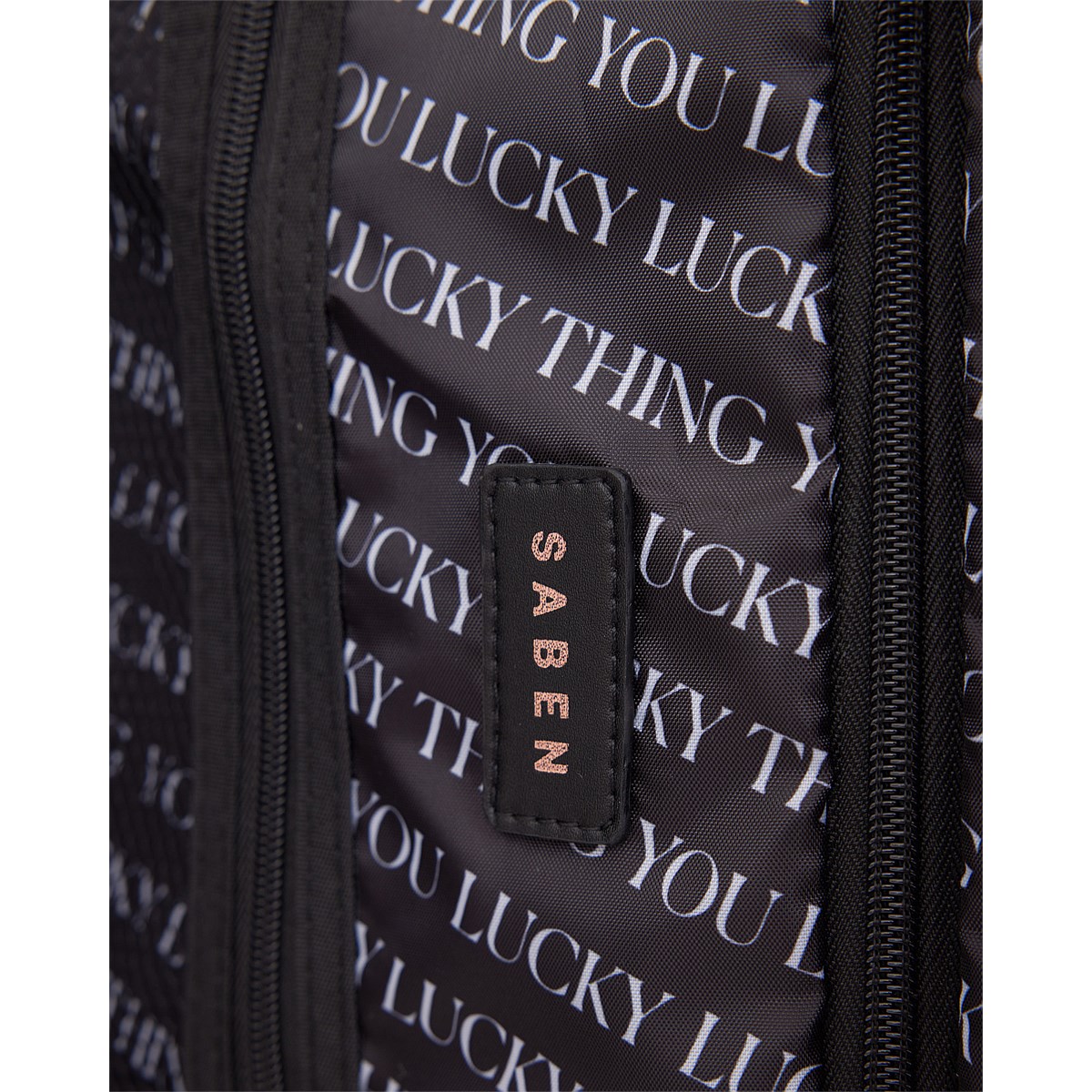 Clever inside and out, our "You Lucky Lucky Thing" lining contains two zippered dividers to separate packed items for easy access and tidy travelling with additional elasticised tie down straps to keep personal belongings tucked and tidy.