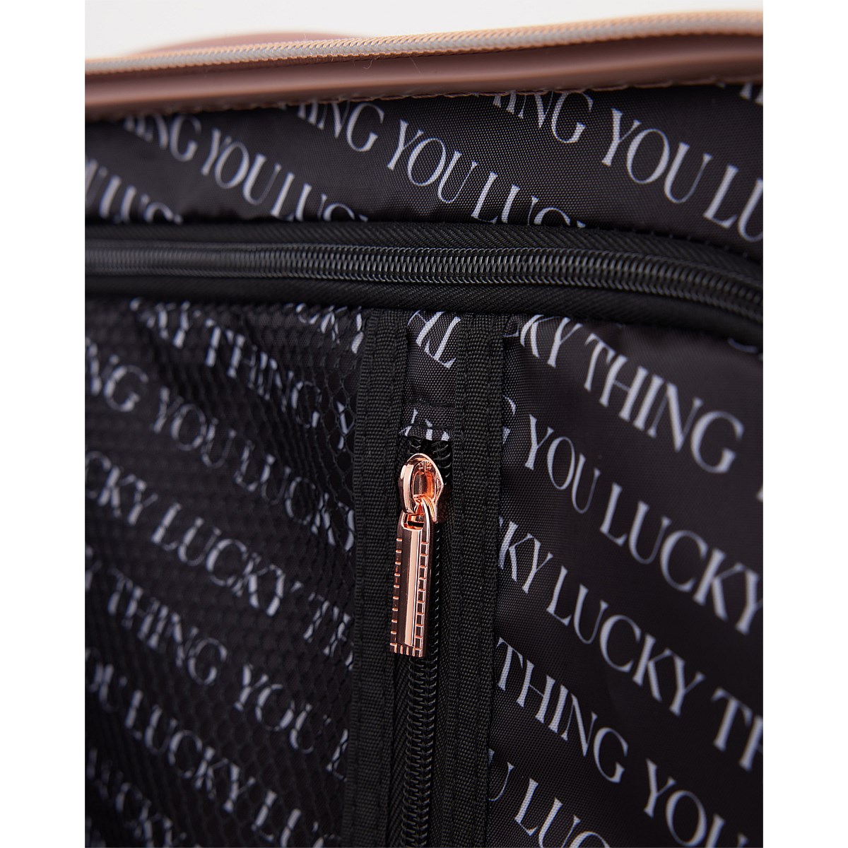 Clever inside and out, our "You Lucky Lucky Thing" lining contains two zippered dividers to separate packed items for easy access and tidy travelling with additional elasticised tie down straps to keep personal belongings tucked and tidy.