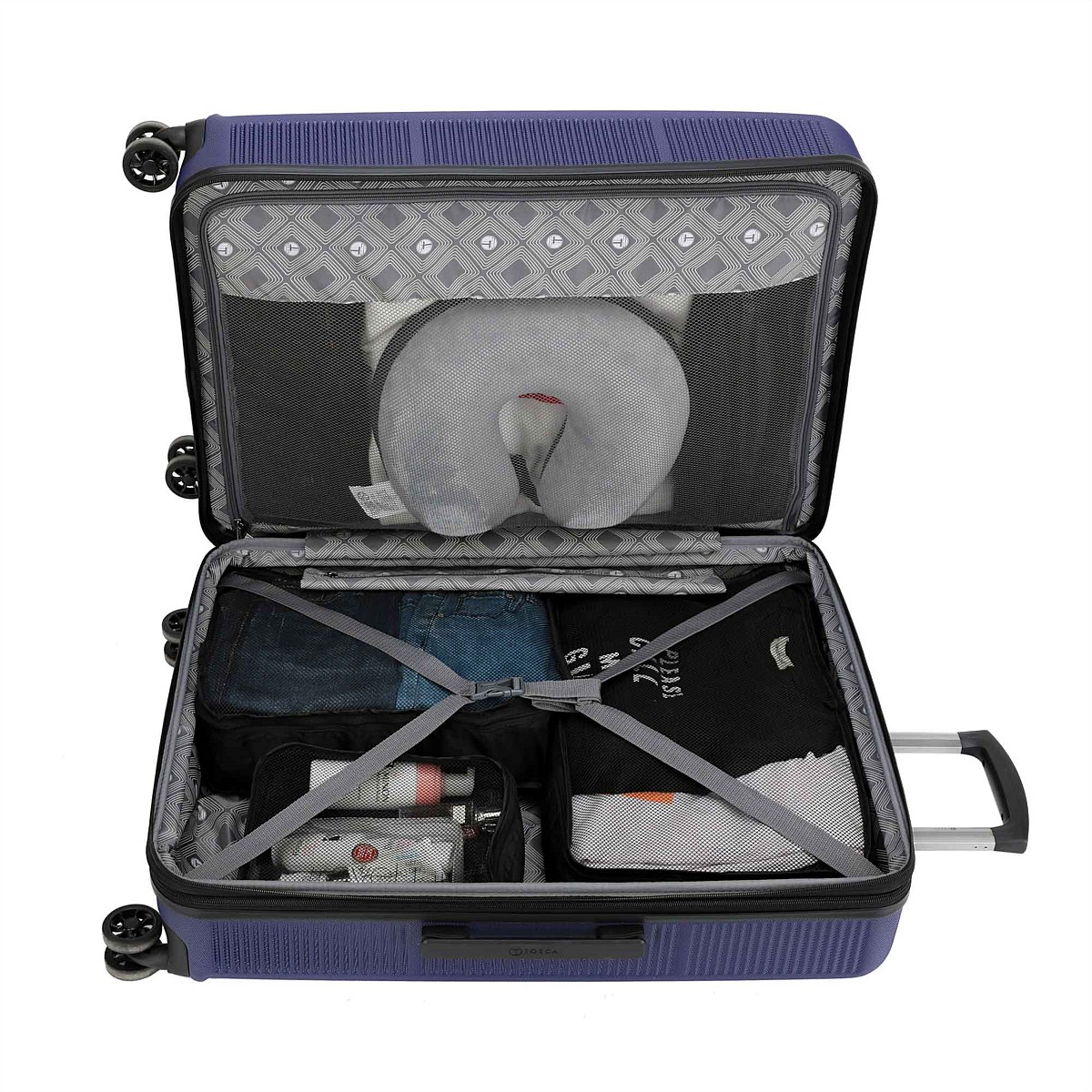 The Tosca Orbit luggage is the ideal travel companion. The trolleycase is made from durable, lightweight polycarbonate, it has an expander system, an integrated TSA lock, 360 degree double spinning wheels, and features fully internally lined with tie down straps and a zipper compartment.